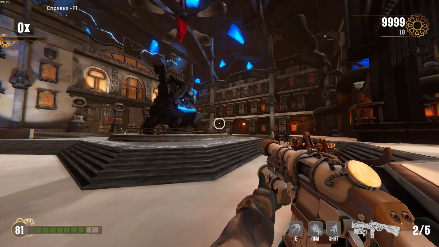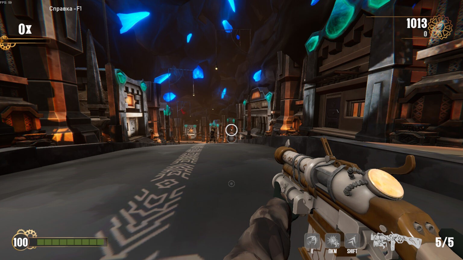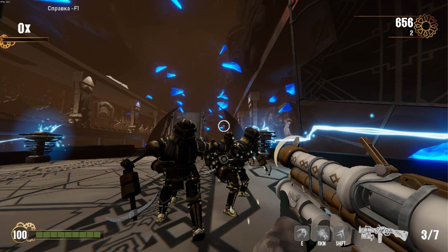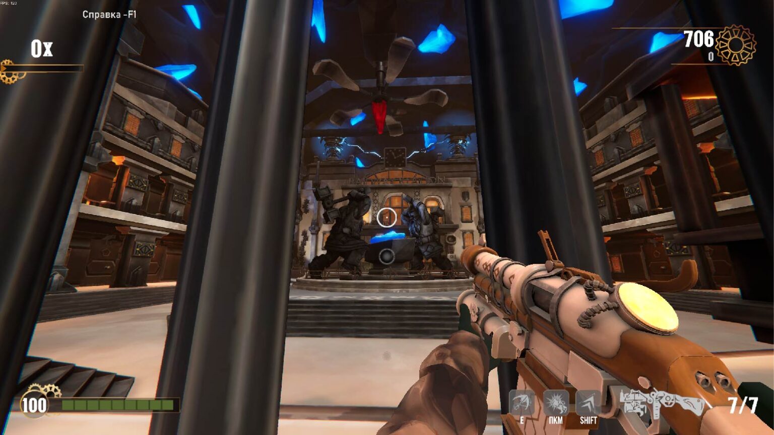 Сам сеттинг любопытный, окружение, как и сам выбор стилистики, порадовали. Но главное в этой игре - стрельба. И на данный момент ощущение импакта среднее, над ним стоит поработать, в особенности со звуком стрельбы. Что касается ритмической части - сама музыка, представленная в демке, неплохая. Но лично у меня плохо соотносится с сеттингом и визуалом. Отрисованная моделька оружия навевает мысли о музыке а-ля кантри, рок. Эстетика "Дикого Запада" с "электропанком" и "паропанком", что ли? Может быть имеет смысл попробовать поэкспериментировать с кантри-роком и блюз-роком (референс - Starcraft 2, сериал "Светлячок"), но не потеряв, при этом, плотную электронику, которая уже есть в демке! Что касается попадания в ритм: я музыкант-любитель со стажем и обычно ритмические механики меня не вгоняют в ступор. Сейчас ориентироваться даже по интерфейсу-подсказке трудно, он плохо выверен. Сама логика музыки, построения её, не позволяет использовать нечётное количество патронов, с учётом того, что перезарядка тоже занимает какую-то часть ритма. На стриме мы со зрителями считали. Допустим патронов должно быть 4, тогда на "И-раз-и-два-и-три-и-четыре" я их все выстреливаю, затем перезарядка, например на 2 счёта "и-раз-и-два" и тут же я уже должен стрелять "и-раз-и-два-и-три-и-четыре". Сейчас 5 патронов, долгая перезарядка, выбивающая из ритма. В совокупности всё это не позволяет насладиться процессом. Стало быть звук перезарядки (или анимация) тоже должны помогать оставаться в ритме! А к этому уже и получится подтянуть и интерфейс-подсказку и даже некоторые элементы окружения - тоже могут двигаться в такт и помогать игрокам словить ритм :)