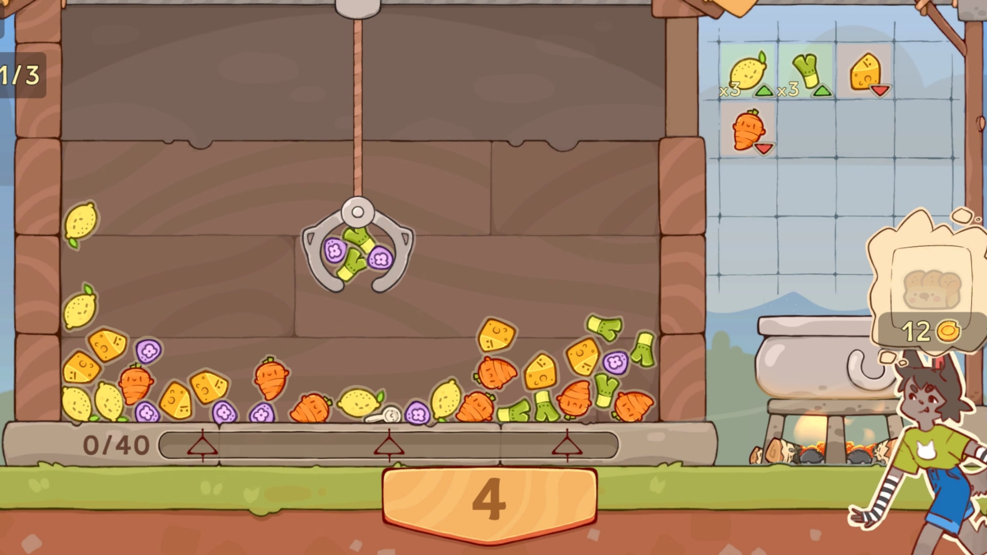 С геймплейной точки зрения кор механику надо как то разнообразить. Может добавить ещё мини игр по готовке, и не делать упор именно на этой игре. Например игра про повора у которого только крюк вместо руки, и ему нужно этим крюком брать ингридиенты, нарезать овощи, раскатывать тесто итд. Тут и больше возможностей для апгрейдов может открыться, а не увеличения рейтинга за поднятие ингридиента