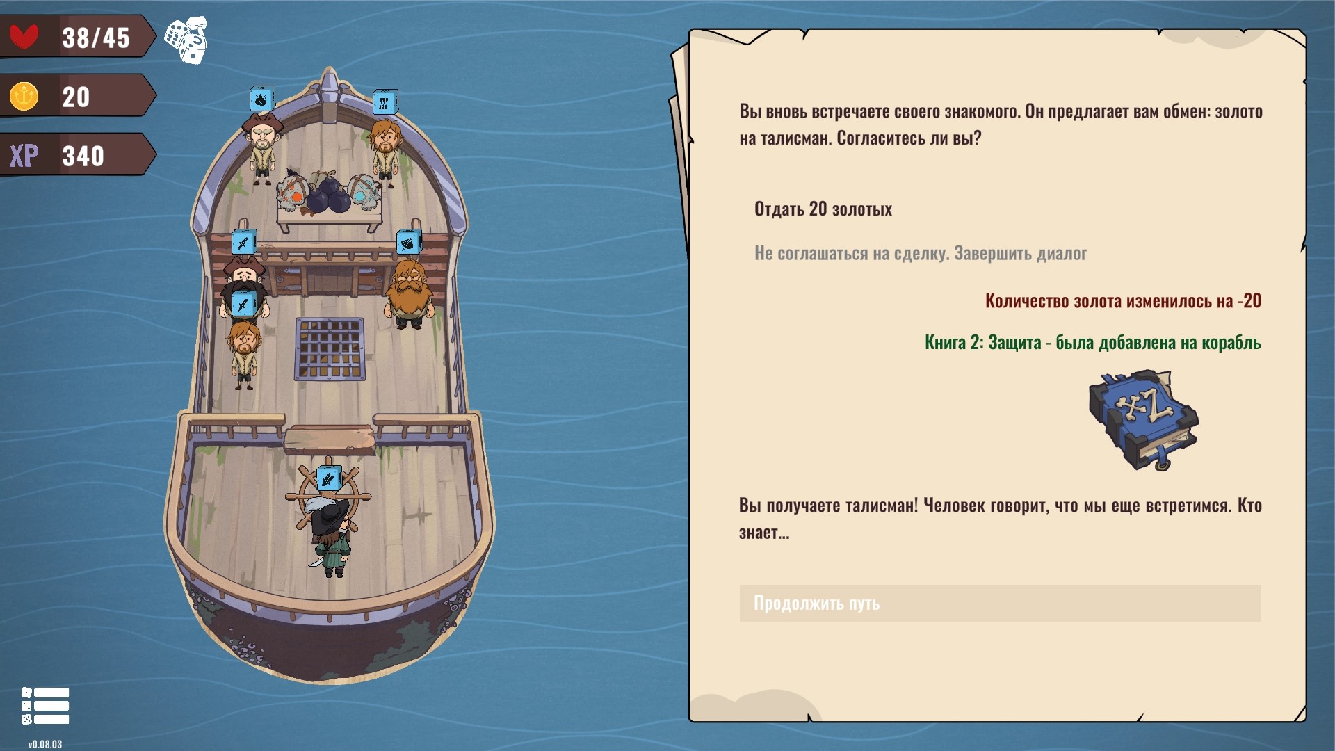 Непредсказуемые ивенты встречаются по мере продвижения по карте. Рискнете ли вы взять незнакомца на корабль? Помилуете ли целую деревню? Подружитесь ли с интересными персонажами? Порой, результат может быть непредсказуем, но не стоит упускать возможность узнать побольше.