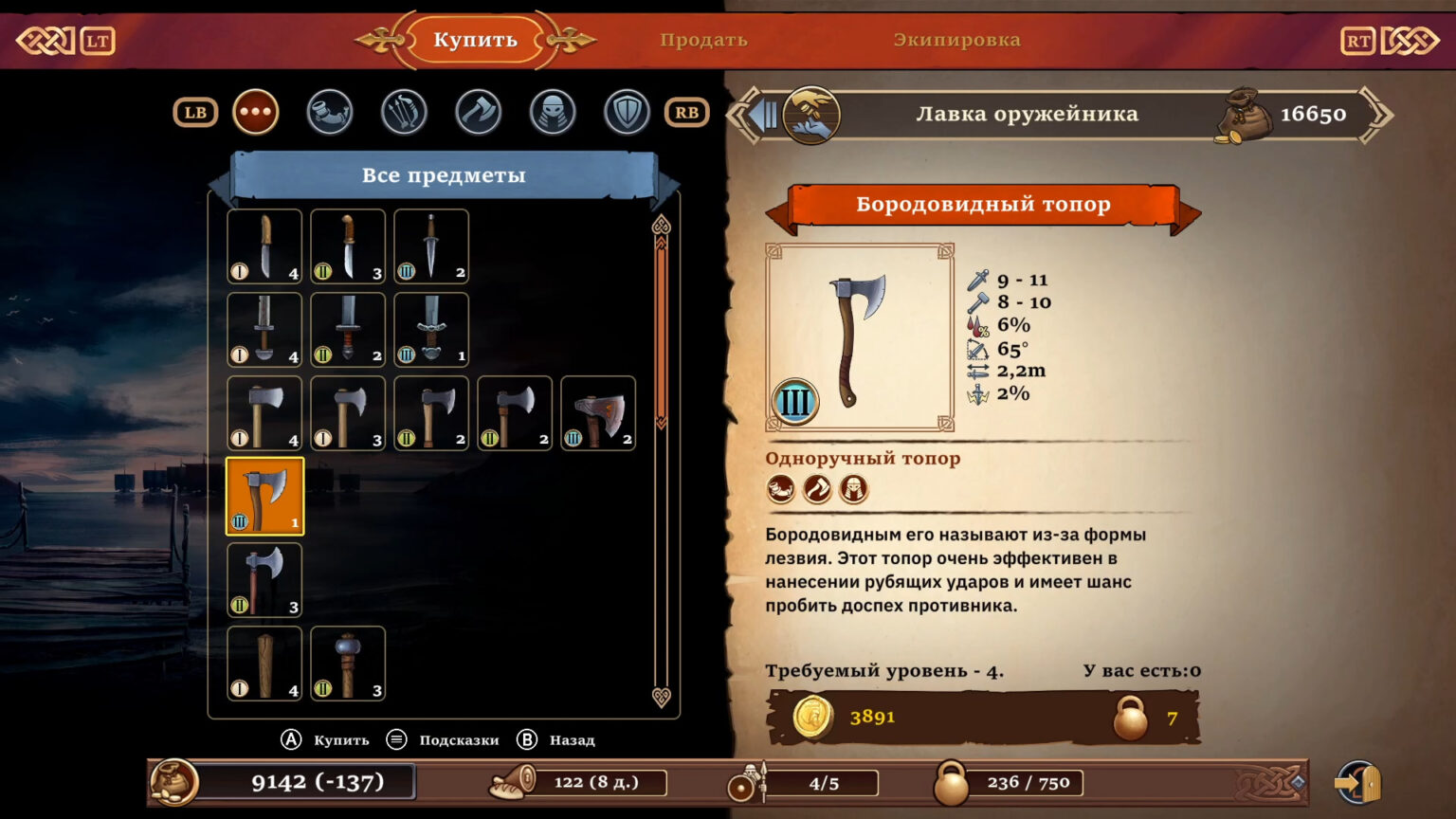 2) Я так и не понял, есть ли в игре торговая система (купил товар в одном городе подешевле, продал в другом подороже). В обучении об этом не говорилось, внутри игровой информации в явном виде нет, а плавать по рынкам и сверять цены руки не дошли;