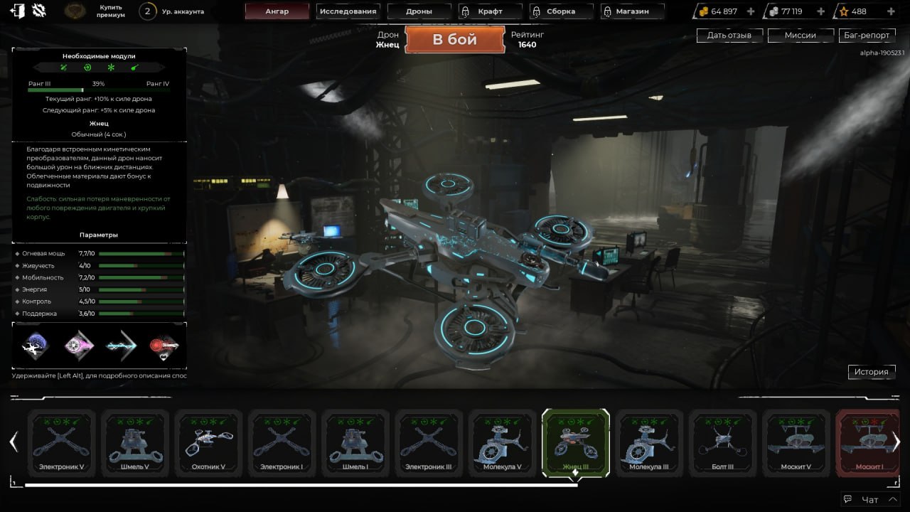 Сражения прямо очень бодрые и интересные. Особенно — если разобраться что тут к чему и как устроено. Народ активно играет. Есть несколько видов дронов, для разных стилей игры.