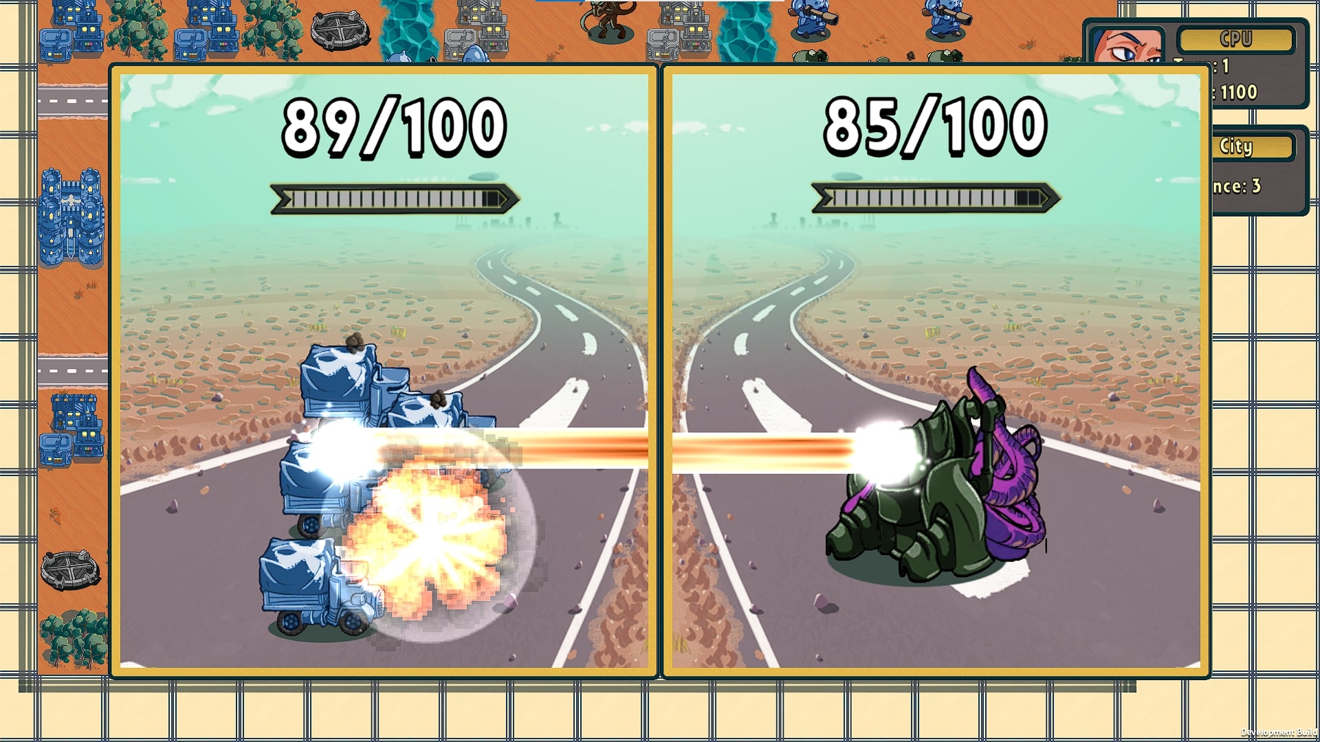 7) Уникальные апгрейды для каждой фракции (4, 5, 6 миссии в демо), которые привносят множество новых механик, которых не было в AW. К примеру транспорт может перевозить 2 юнитов сразу, либо атаковать. Дирижабль может перевозить танки, а также дает бонусы при высадке юнитов. Танки атакуют сильнее при полном боезапасе и т.д.