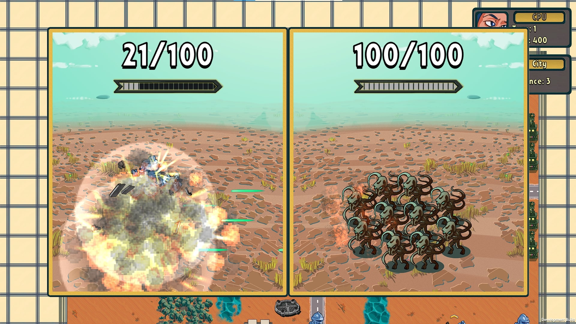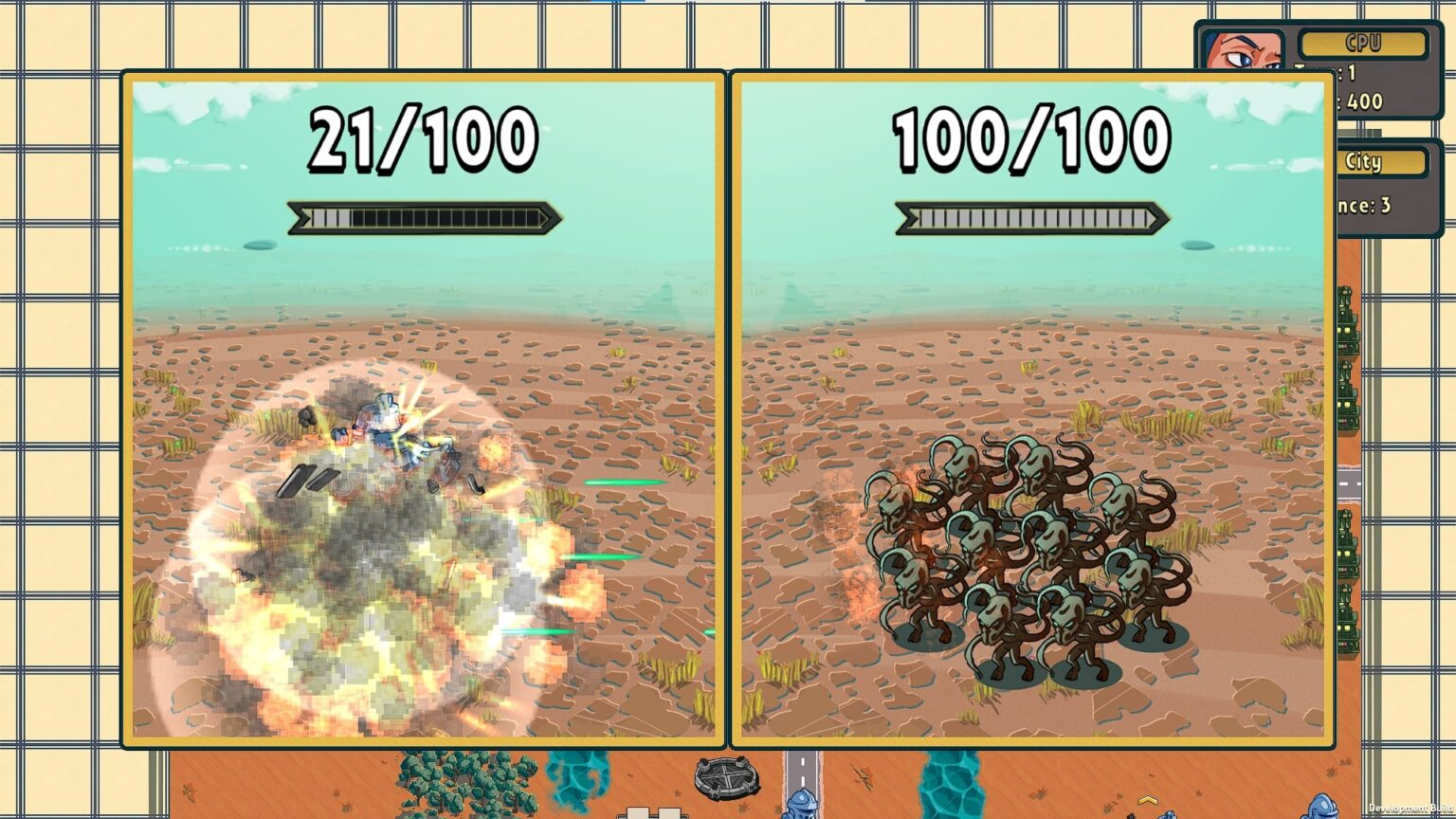 Тактическая стратегия, в которой сражаются две армии, а битвы проходят по принципу камень/ножницы/бумага/вертолёт. Вот есть юниты, что сильнее этого типа войск, но они абсолютно бесполезны против другого. Вот вам карта, россыпь отрядов и глобальная цель - уничтожить противника.