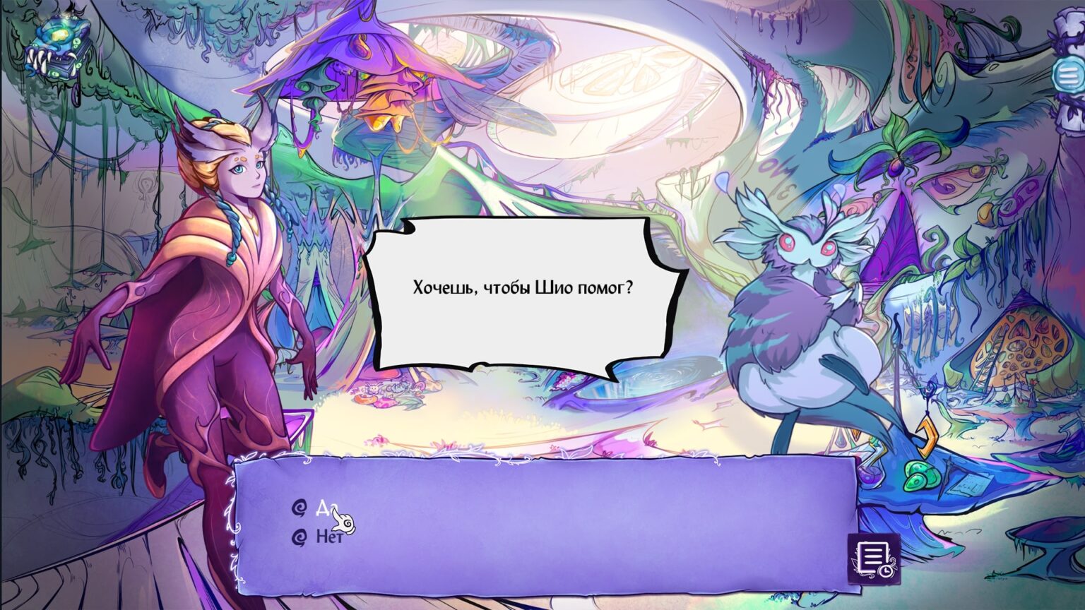 Вторым крупным недостатком является геймпплэй, а именно вставки с пиксельхантингом. И без того неторопливое повествование спотыкается о необходимость прокликивать все подрят и слушать лекции об особенностях сеттинга. И пропустить их нельзя. Такое решение неплохо работает на фокусировку игрока на прикольном арте, но стреляет в обе ноги и без того вялому повествованию.