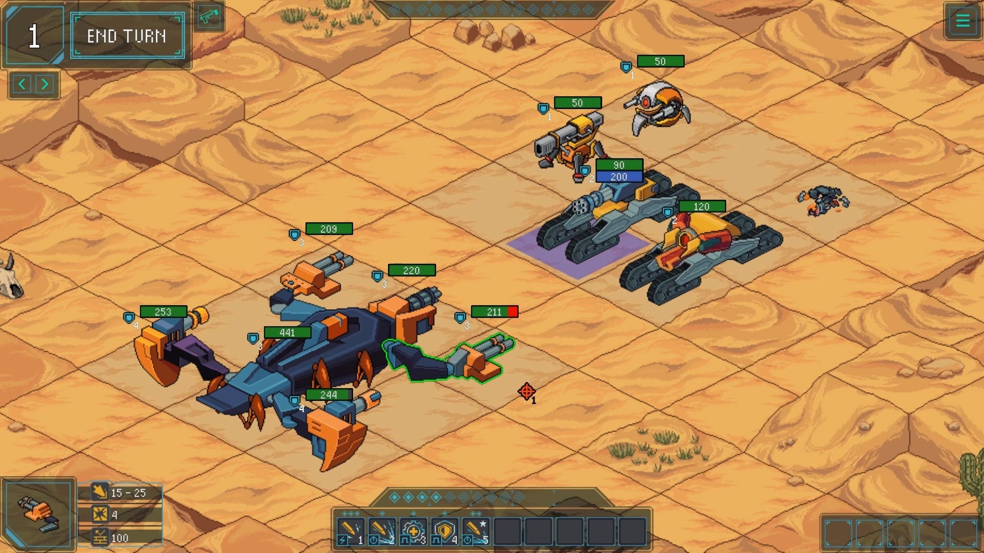 - Есть общий запас энергии, распределяемый между юнитами для совершения действий.