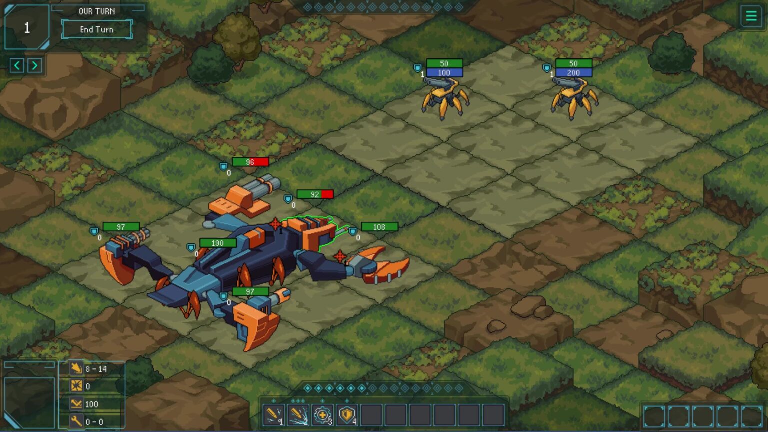 Мнение/Предварительный вердикт: Стандартный пошаговый меха-батлер с пиксельной стилистикой. Ничем не выделяющийся продукт, слишком стандартно.