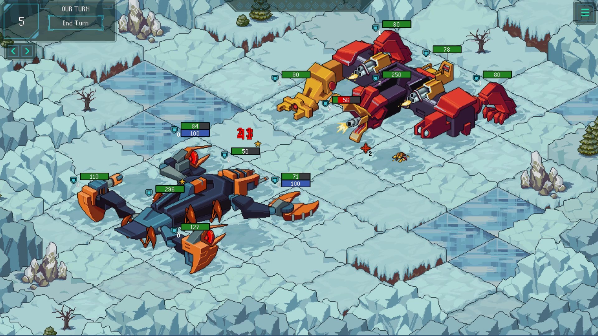- Есть общий запас энергии, который нужно распределять между юнитами, что позволяет им совершать действия.