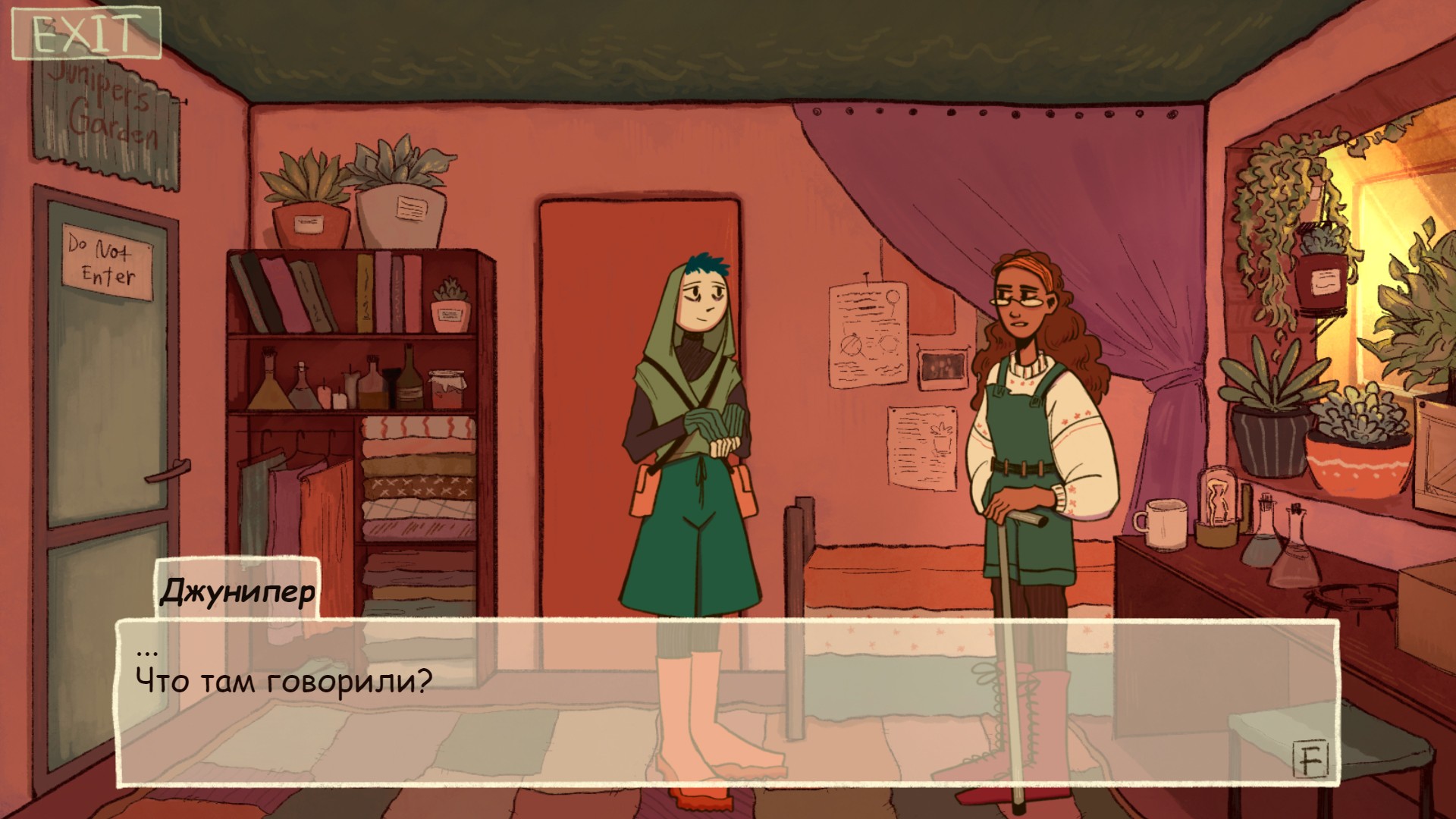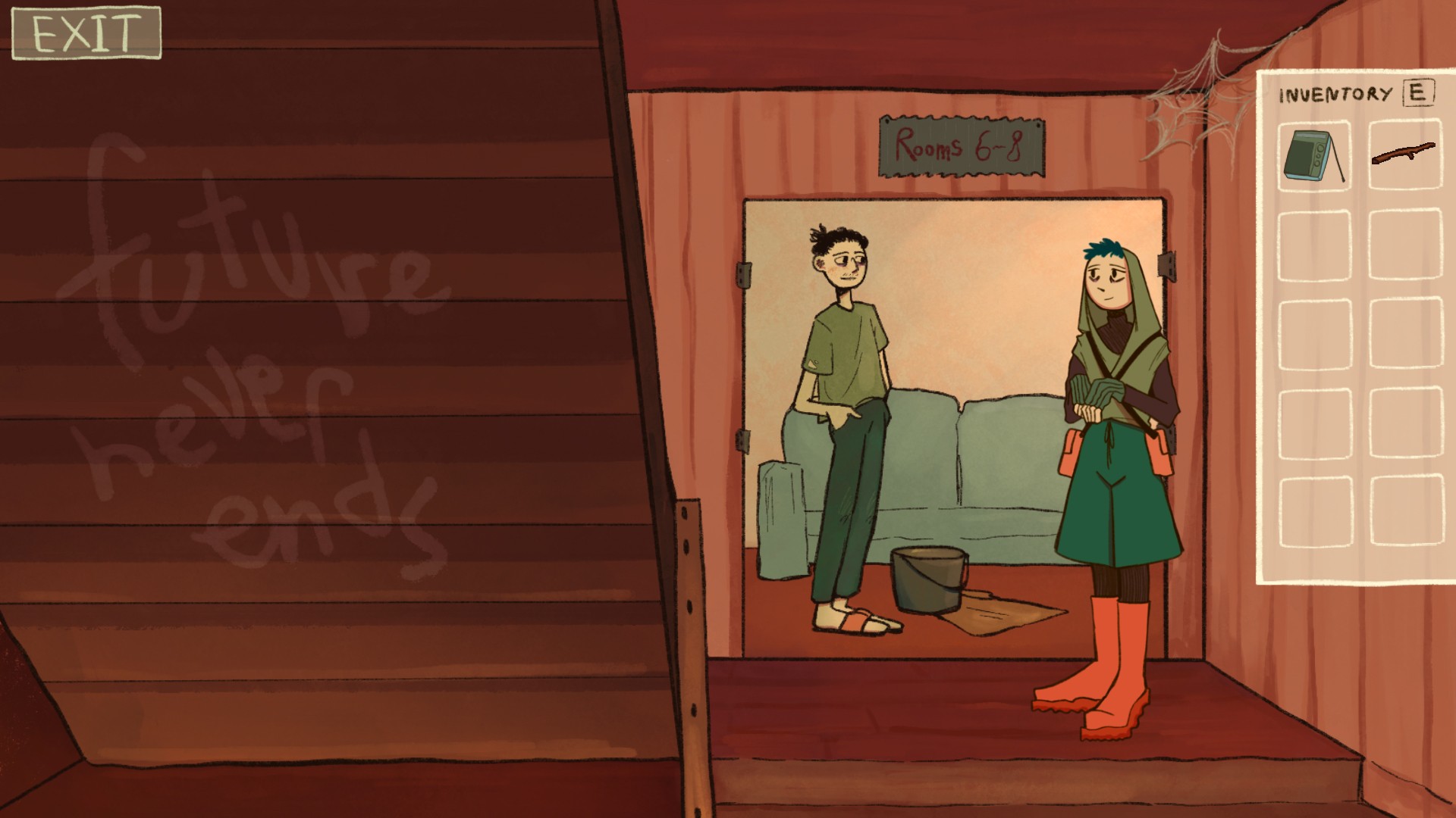 Сюжетно ориентированная адвенчура, напоминает "Mutazione". Также ходим по городу после некого постапокалипсиса и общаемся с местными жителями. Графически навеивает флэш мультфильмы, особенно чем-то "Ежи и Петруччо". Музыкальное сопровождение приятное. Минусы - это интерфейс и управление. Во-первых хотелось бы проматывать диалоги мышкой, а не только клавишей <<F>>, Во-вторых инвентарь, сделать его тоже без привязки только к клавиатуре, условный рюкзачок в углу экрана или просто нажатие ПКМ. И реализовать более понятное взаимодействие с предметами, что бы курсор как-то менялся, когда берётся предмет для использования. В-третьих, странно выглядит когда персонаж переходит в город, оказывается на середине локации, а не рядом с горой или дома, из которого вышел. И да, как уже отметили, переход на радио станцию реализован тоже сомнительно, желательно тоже доработать данный аспект. В целом проект вызвал приятное впечатление, и скорее всего подойдет любителям душевных историй и ненапряжных головоломок. Разработчику всех благ и грамотно реализовать задуманное.