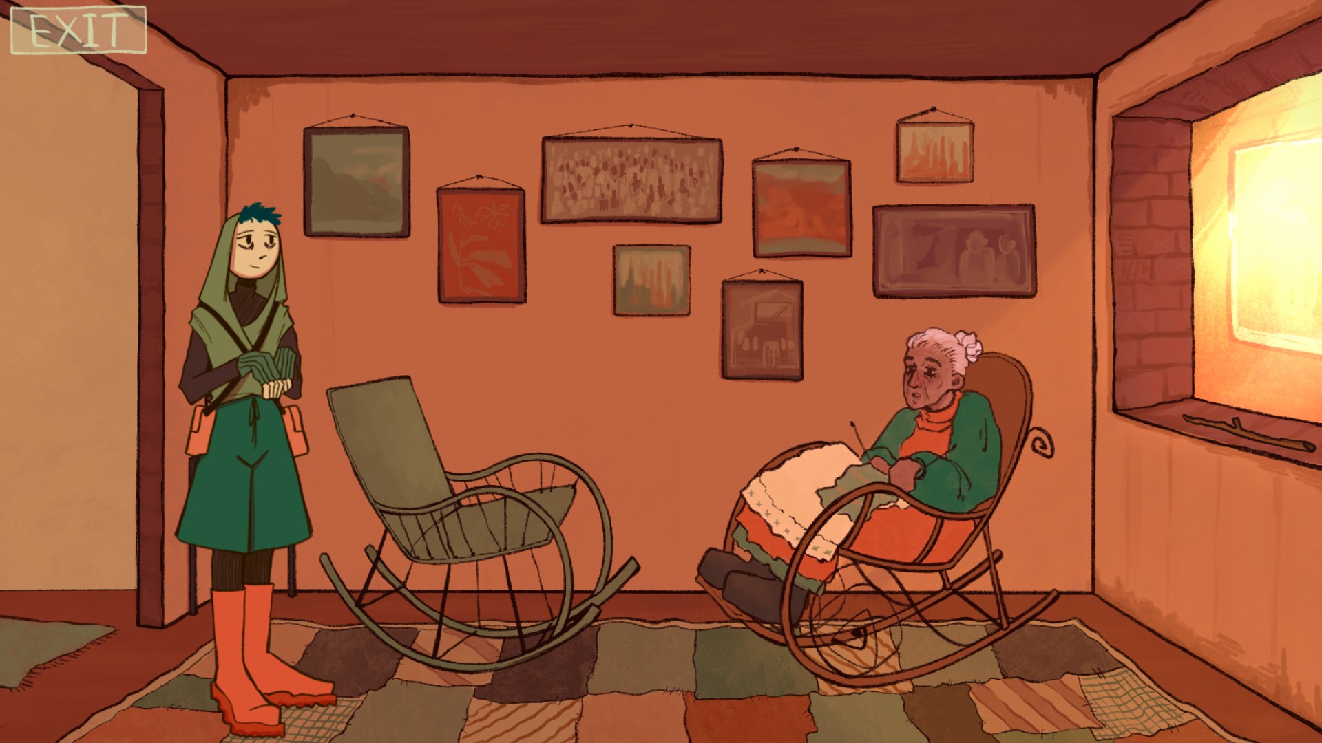 К сожалению игра совсем не понравилась, возможно не моя тематика, грустно и уныло, хочется получить атмосферы и хоть долю положительных эмоций, а тут получается полнейшая депрессия. Да есть своя рисовка она не обычная. Тыкать каждое здание, читая описание тоже так себе затея, было бы лучше, чтобы появлялись надписи при наведении мыши. Музыка хорошая, но когда она играет по сотому кругу, особенно шаманские напевы, начинает напрягать, сильно. Возможно игра раскроется в истории, но пройти дальше места с паутиной не получилось, игра забаговалась, палка сначала пропала из инвентаря и вернулась на подоконник, после игра повисла отключив мне даже микрофон на трансляции, после перезапуска действия никакие сделать не получилось.