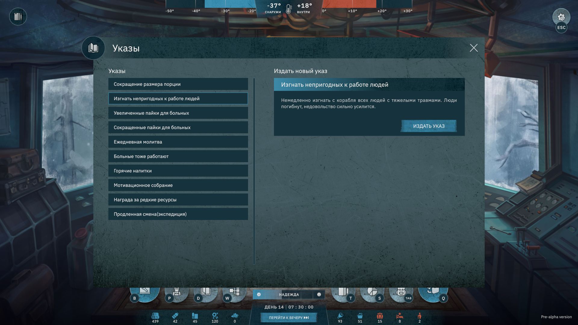 По вступительному ролику мне показалось, что разработчики вдохновлялись стилем Фростпанк и частично это подтверждается: можно управлять подопечным экипажем, отправляя на сбор ресурсов, строить здания, проводить исследования.