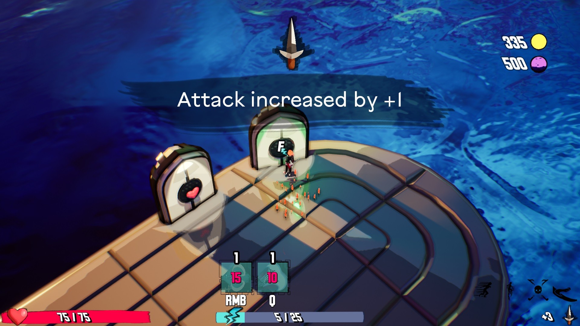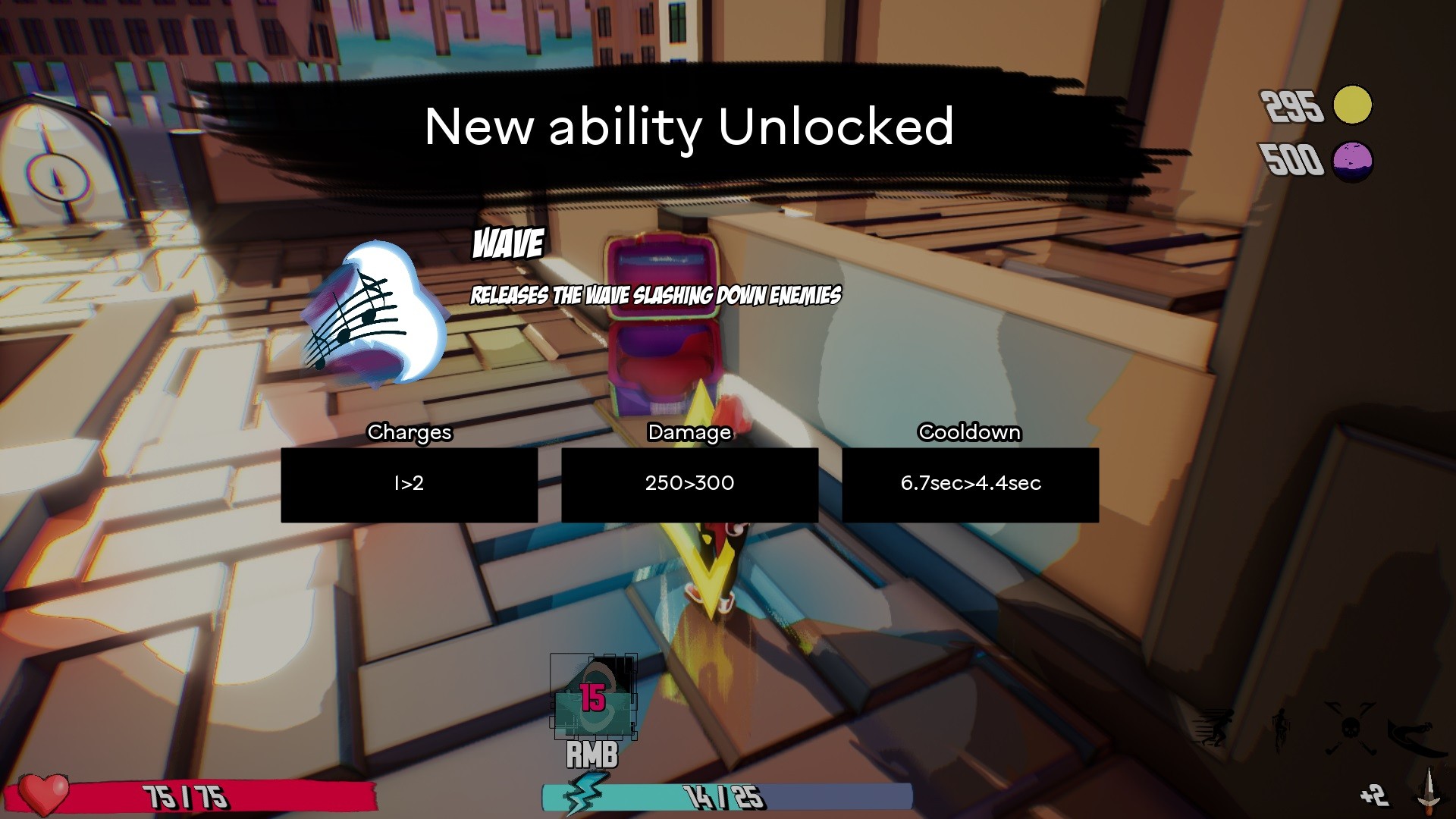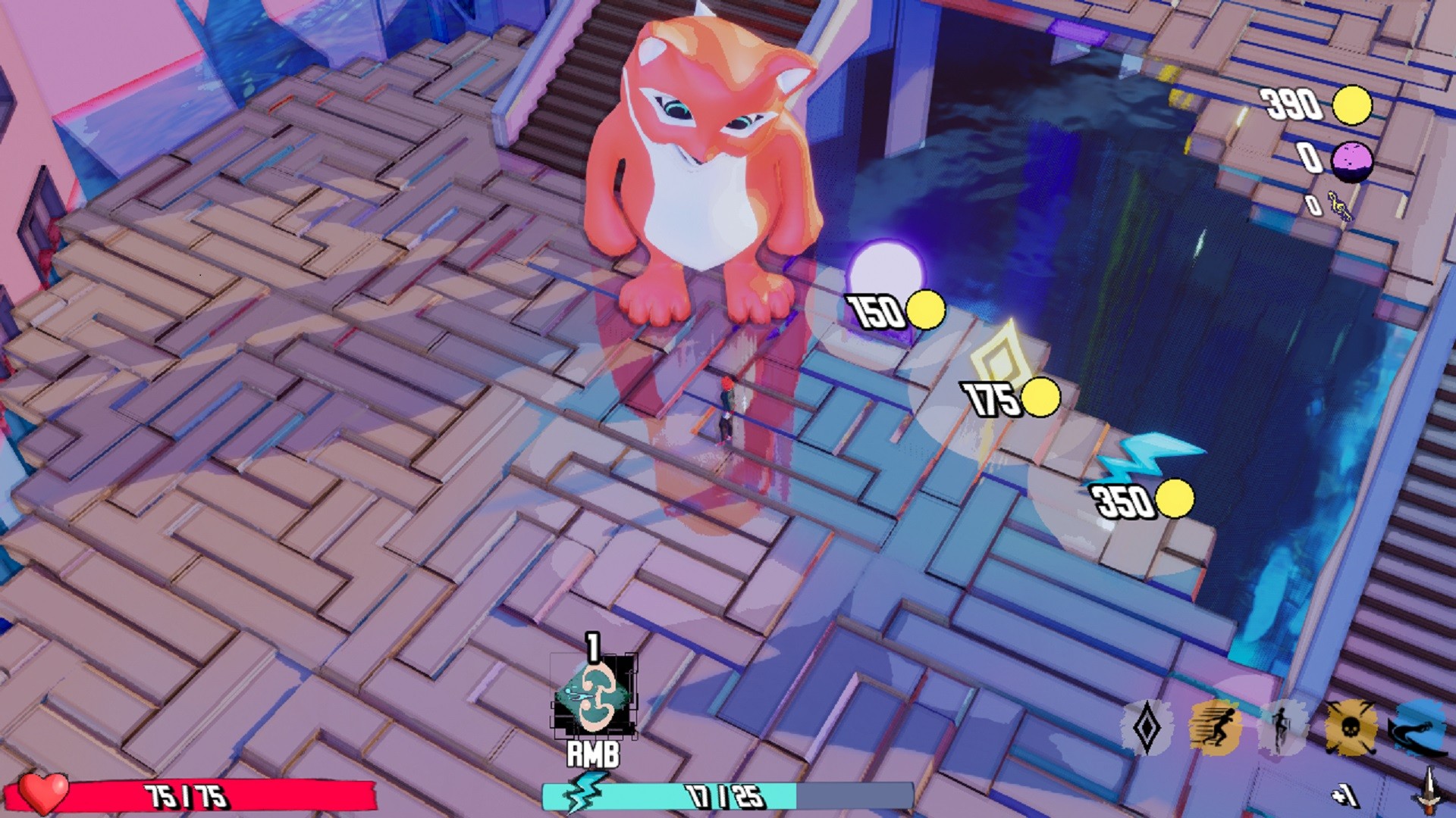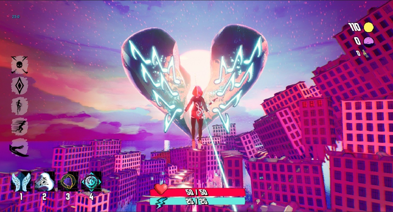 В игре есть как элементы квеста, так и платформинга, но основной геймплей это всё ещё битвы. За каждое сражение вы становитесь сильнее, получая прибавки к статистикам, валюту для прокачки, а также активные способности и пассивные усиления - ваши прыжки могут поджигать противника или бить молнией, а может вы хотите взрывать их просто пробегая мимо? Выбор за вами^^~