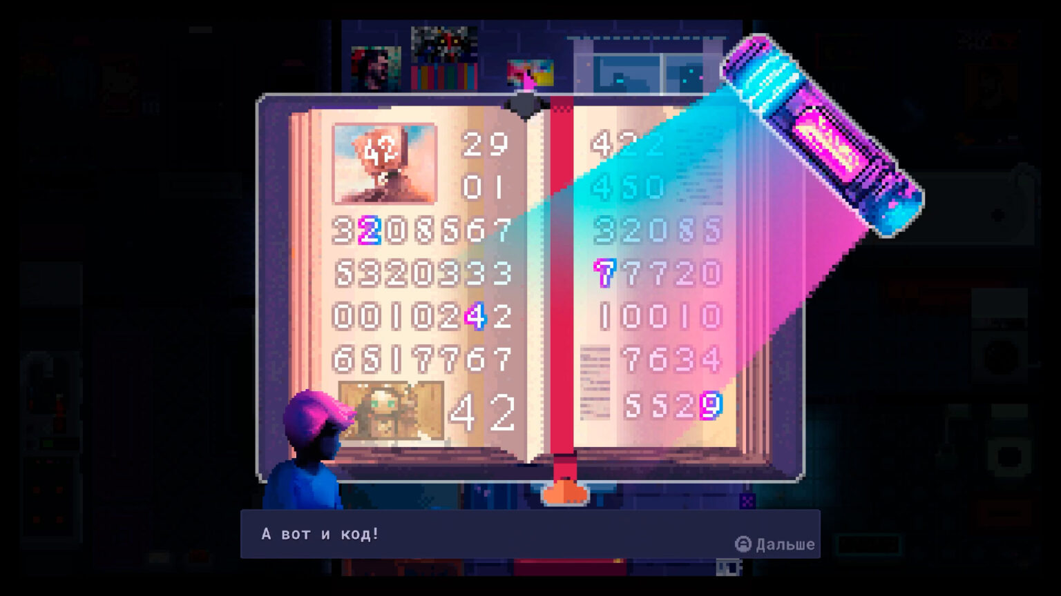 ? Идея/история. Подана аккуратно, порциями, раскрывается с оптимальным темпом и к концу демо захватывает полностью. Порадовало и множество отсылок, например, к Марио, и юмор вроде картины похищения коровы в НЛО за окном.