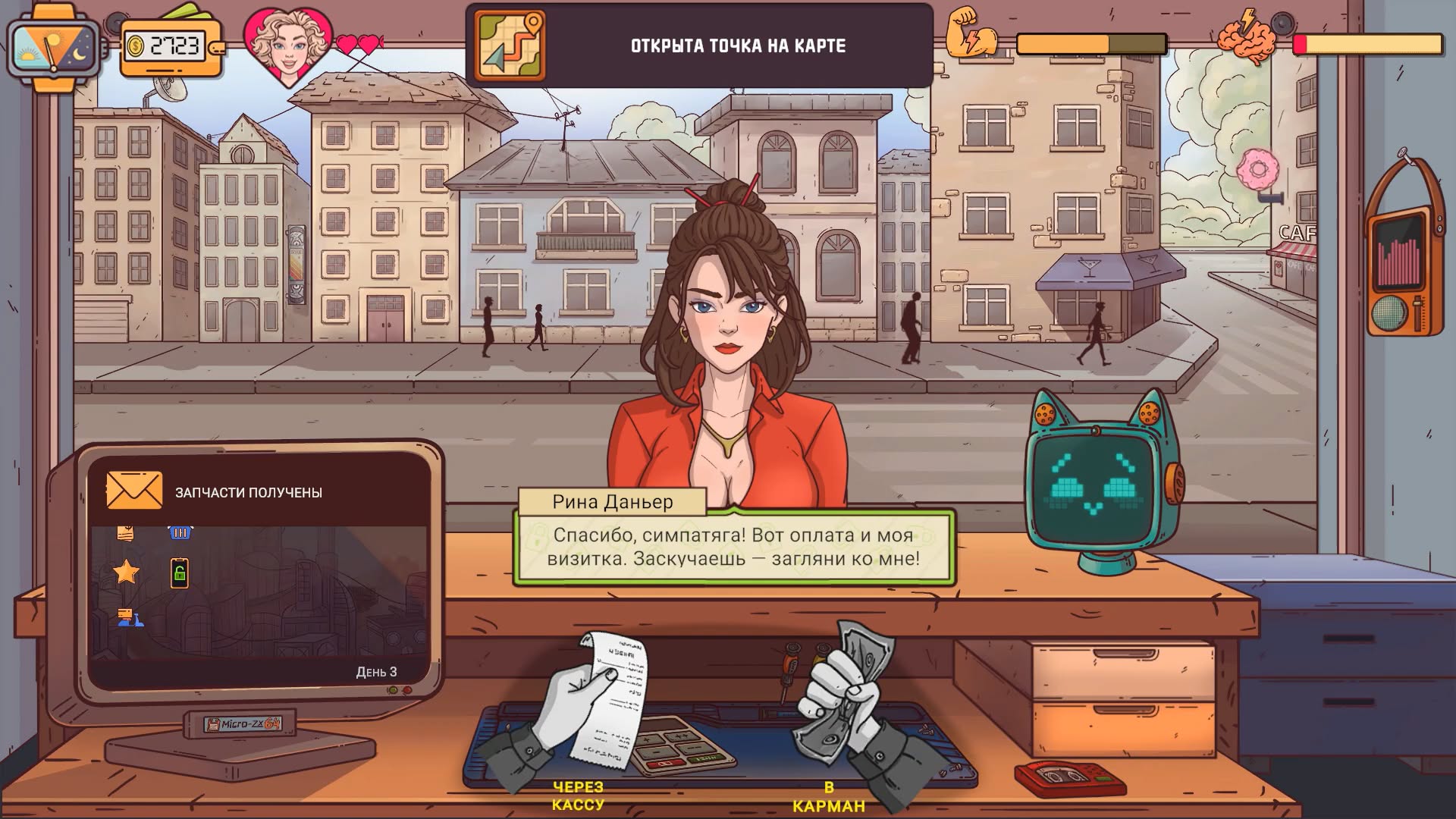 Ты управляешь небольшой мастерской под постоянным давлением: усталость, стресс, аренда и проверки становятся частью повседневной жизни. Процесс ремонта намеренно упрощён, чтобы фокус оставался на моральных выборах, отношениях и долгосрочных последствиях, а не на технической сложности.