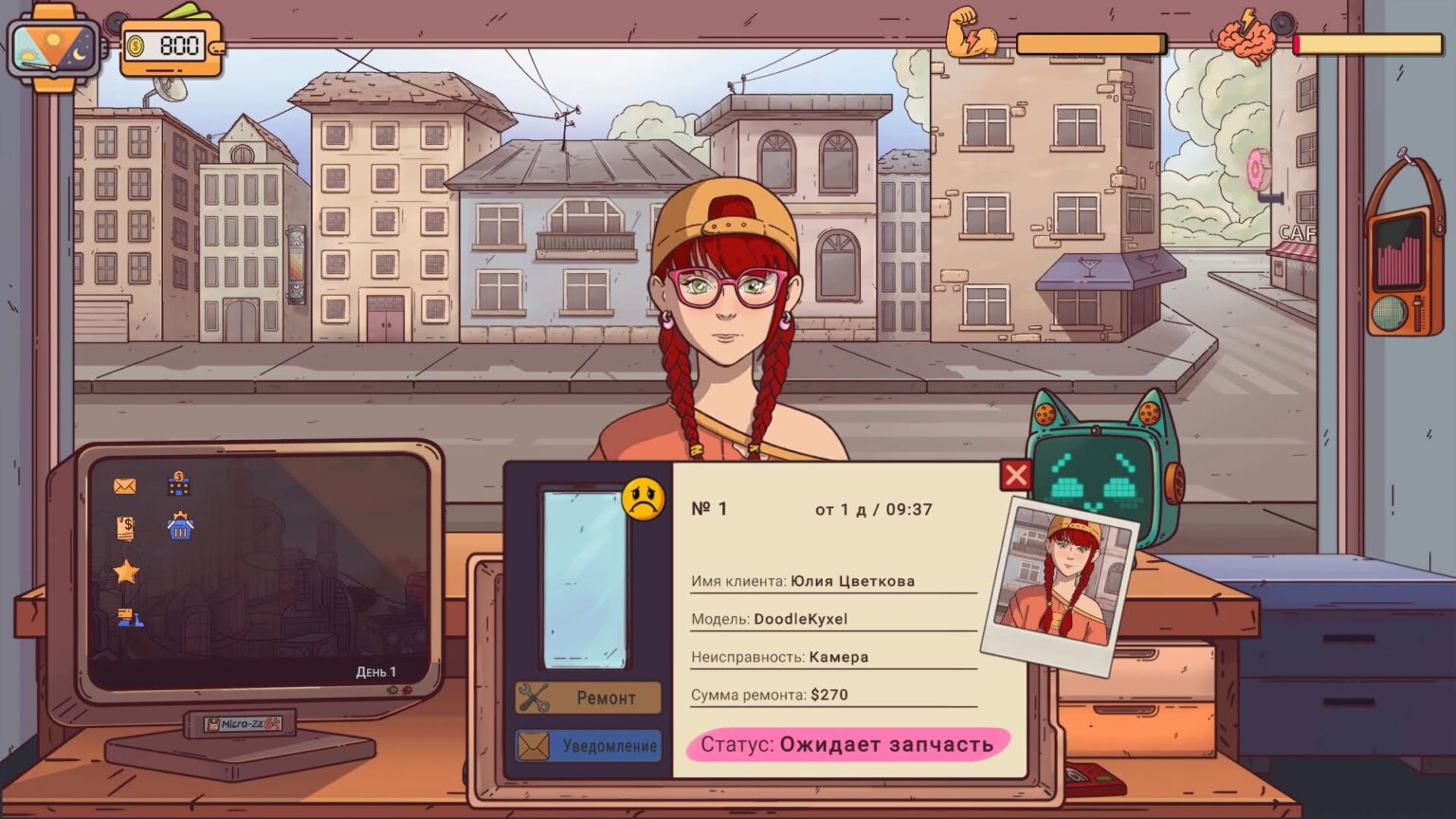 Первая часть задрала планку. Вторая пока не дотягивает, ну по крайней мере в демо версии. Диалоги повторяются через одного посетителя, внешний вид персонажей тоже часто один и тот же. Не понял функцию уведомлений клиентов о ремонте телефона, куда оно им приходит ? :)