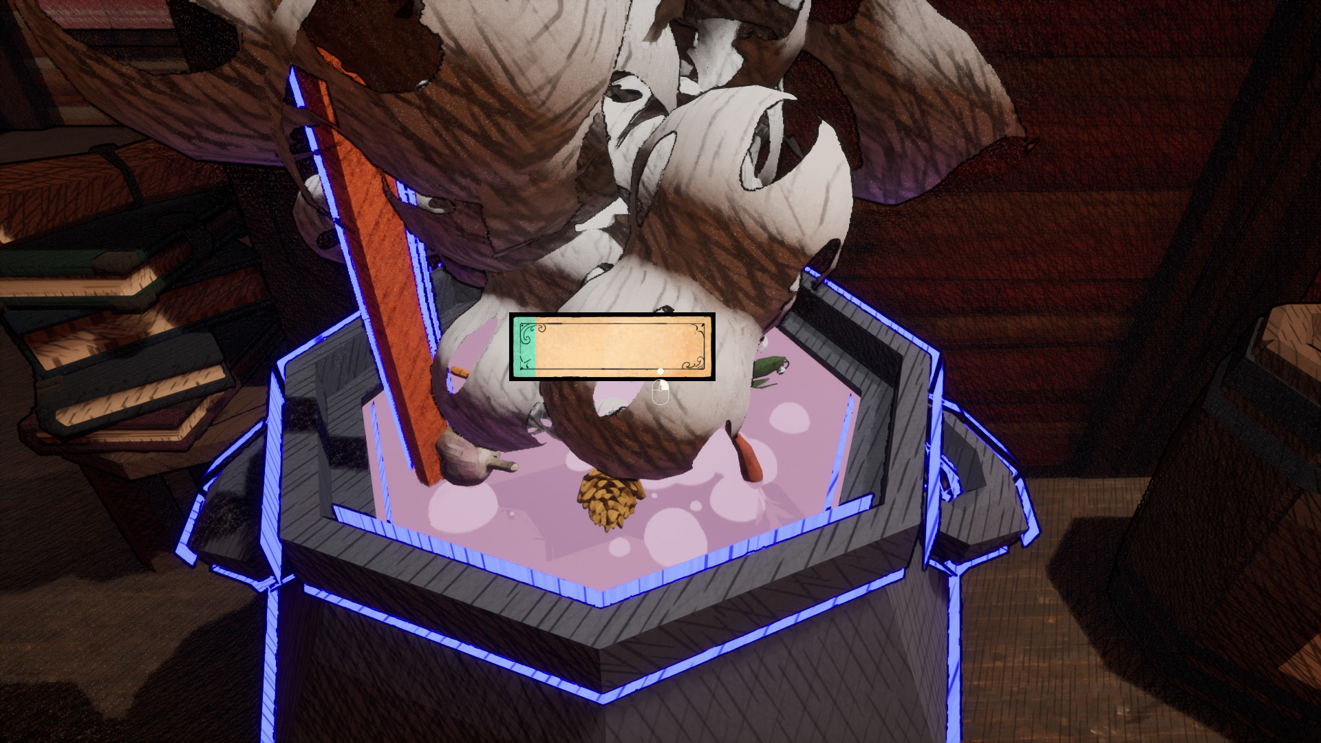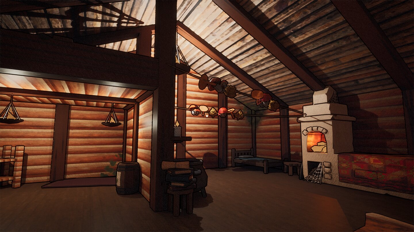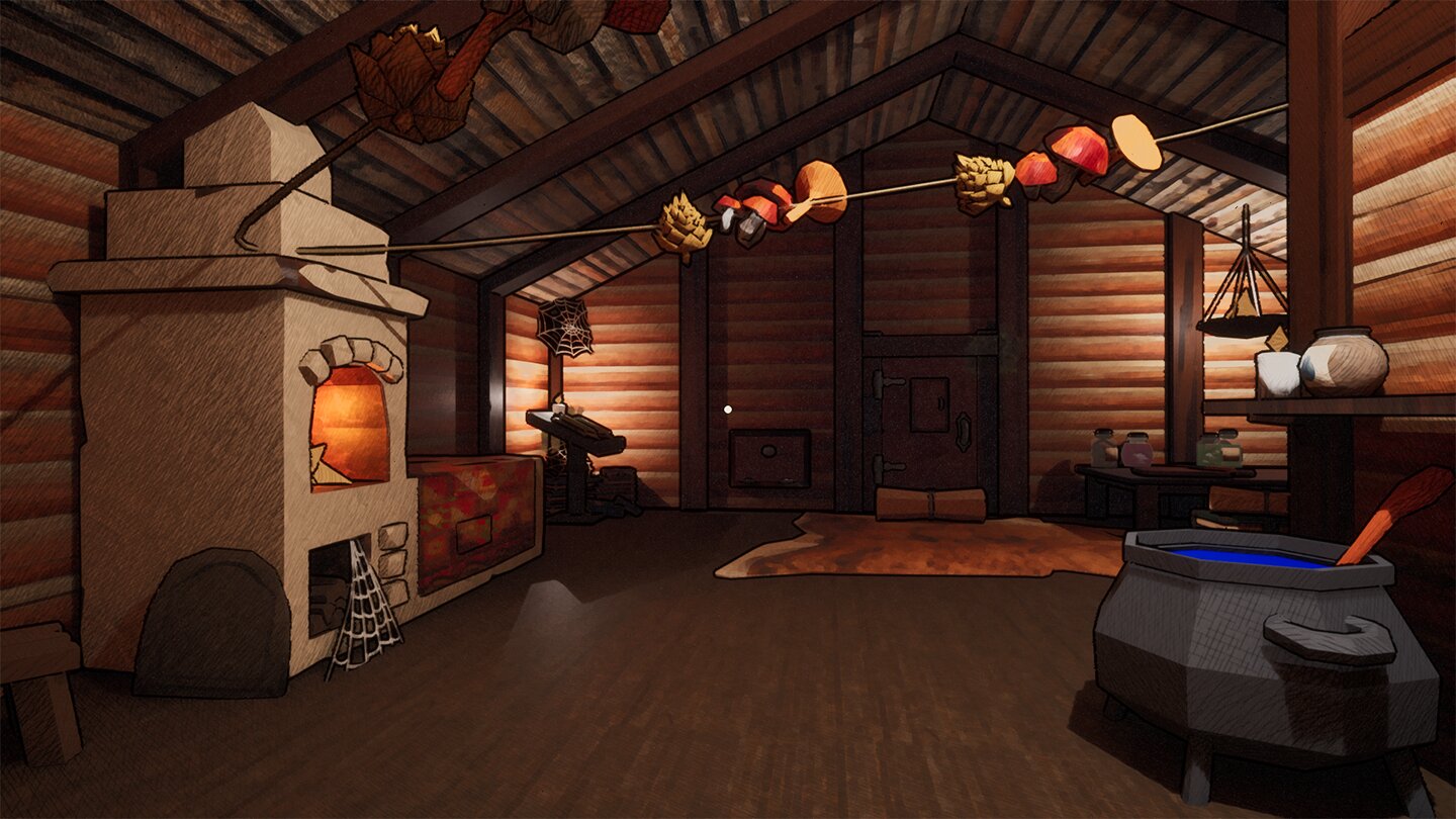 После осмотра игрок работает с Древней книгой зельеварения: подбирает ингредиенты, обрабатывает их и варит зелье. Правильный выбор действий помогает жителям, ошибка влияет на состояние деревни.