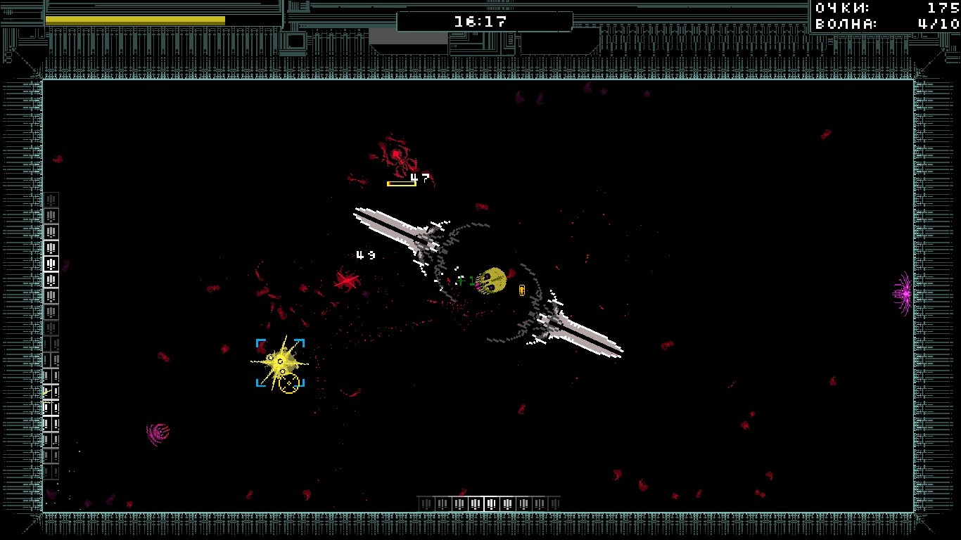 мне игра безумно понравилась, играл в подобные начиная с Crimsonland и заканчивая различного рода извращениями (в хорошем смысле), типа Brotato или Temp Zero. Мне всё понравилось, хотелось бы поддержку геймпада и ритмичные треки,, даже не знаю что добавить, вы на верном пути, молодцы!