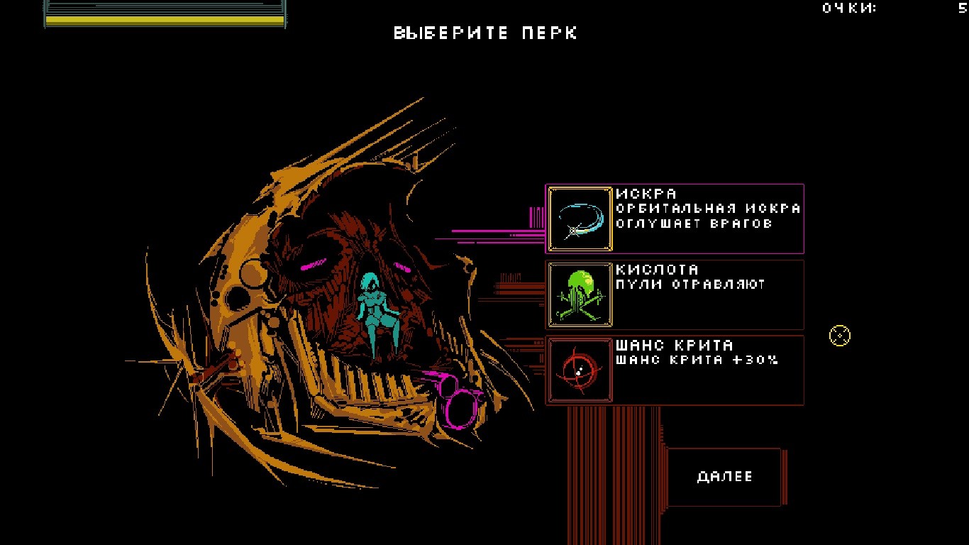 Отличный арт, базовый геймплей. Интересно исследовать перки. Дико сложно, но это нормально. Что-то можно сделать более удобным для игрока. Но ядро проекта просто замечательное.