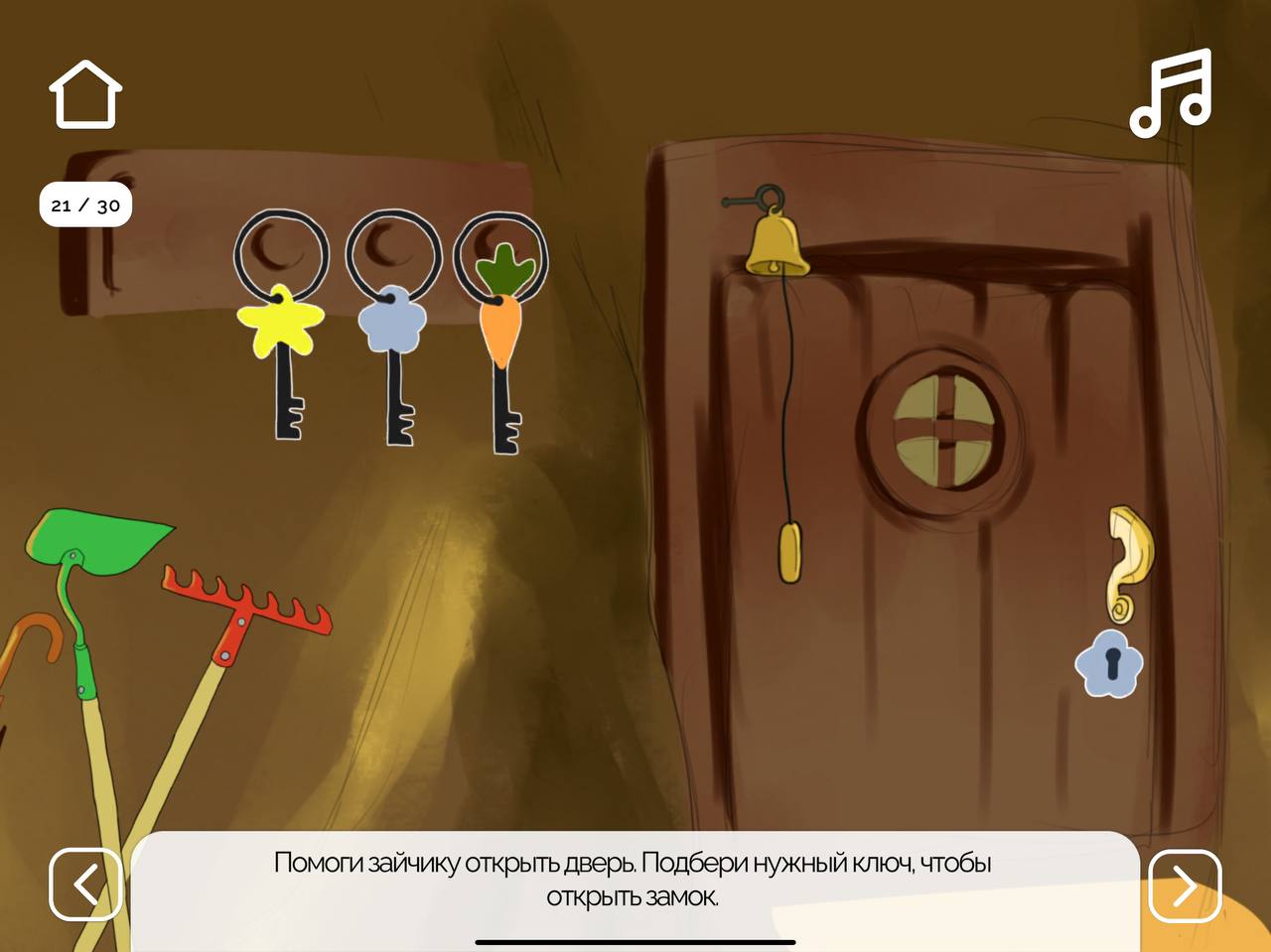 Игры вписаны в сюжет сказки, выполняя каждое задание, ребёнок помогает персонажу и углубляется в историю.