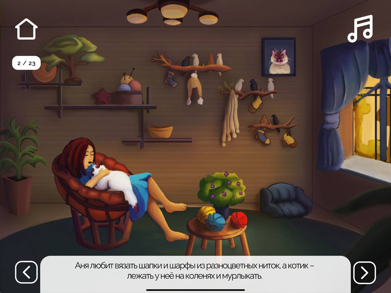 - во второй сказке про Пушистика есть пара объектов, которые скрываются за субтитрами внизу. Первая проблема - попасть в него, а вторая - увидеть. Возможно это неудачно оптимизировалась игра на моём экране. Смартфон на котором играл - OnePlus 7T! Но предусмотреть возможность, например без такой яркой рамки-фона. Или весь интерактив размещать в максимально возможной "безопасной зоне".