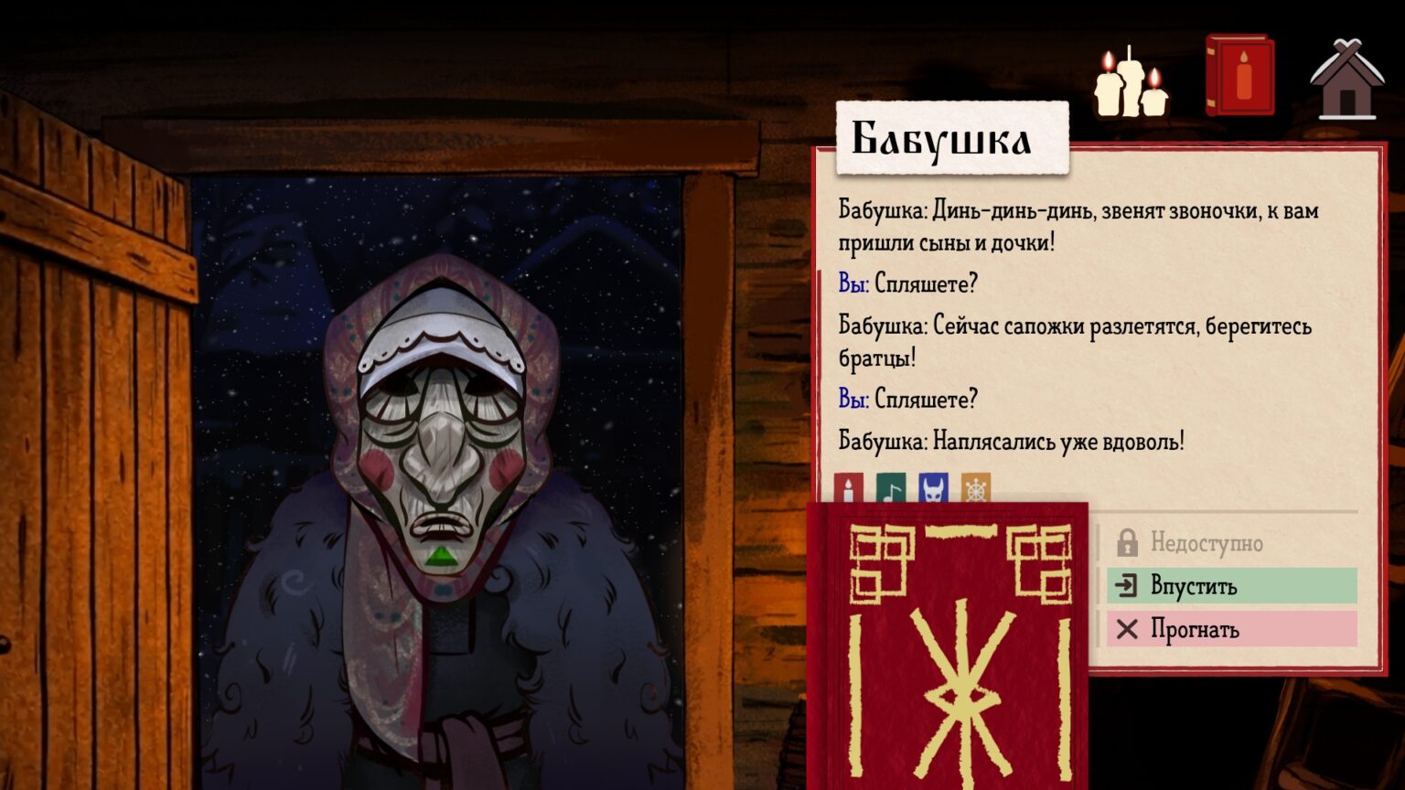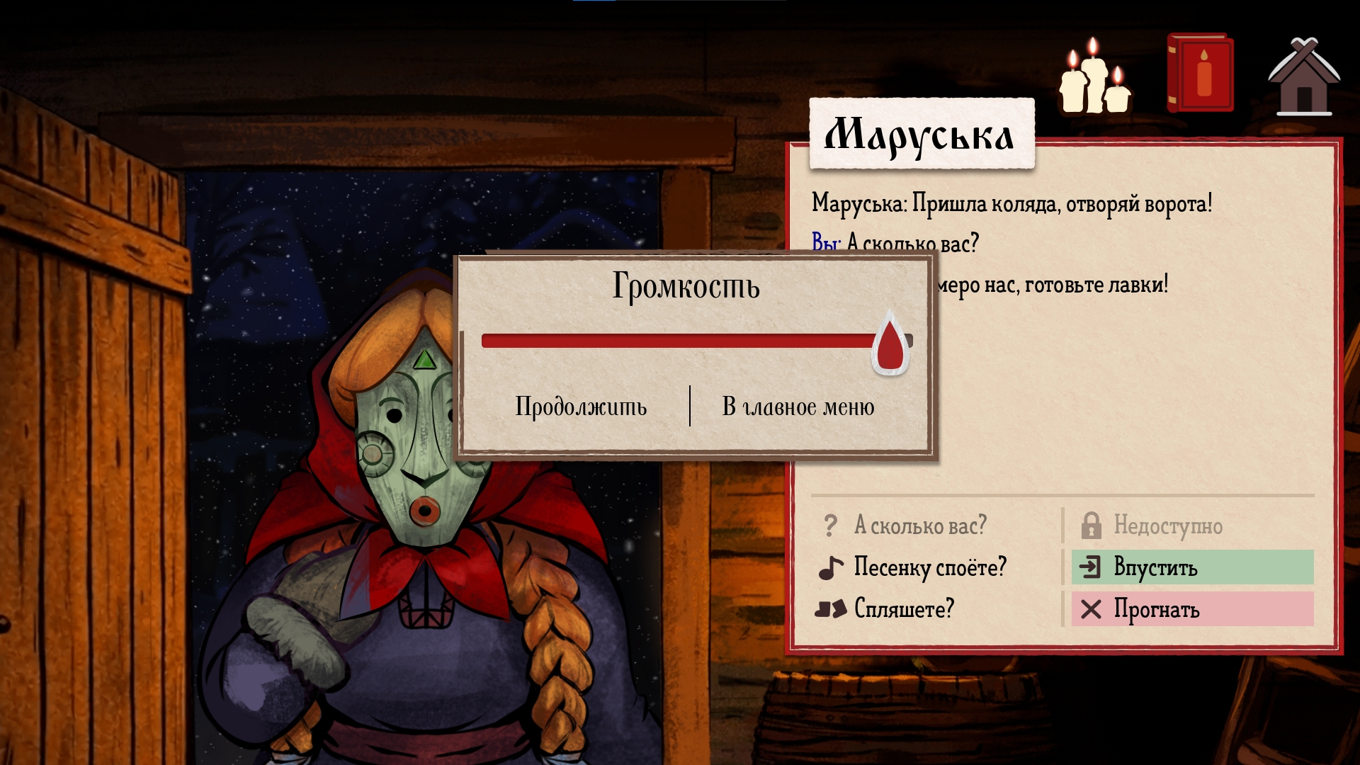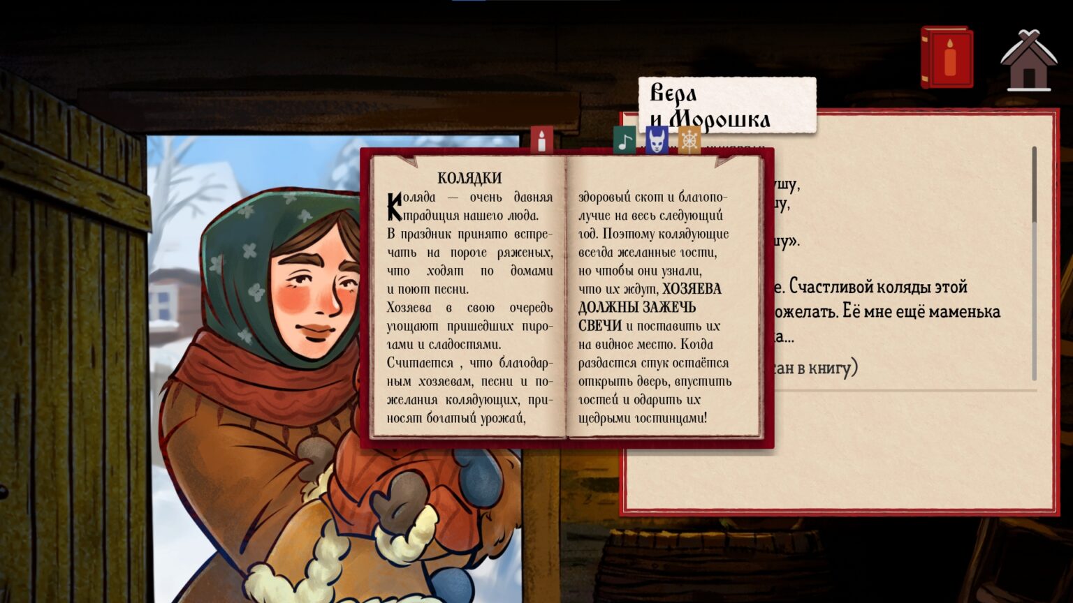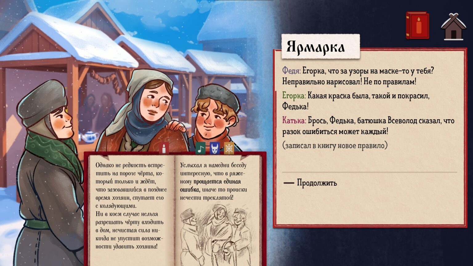 По мере прохождения игры вы будете встречать разных персонажей, а сама задача, отличать колядующих от нечисти, будет усложняться.