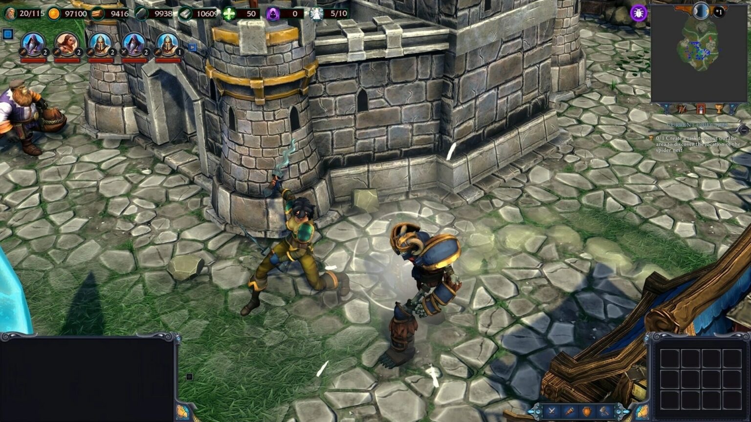 Игра очень понравилась геймплеем. Интересно наблюдать за своими героями и их прокачкой, корректировать их действия, вести экономику процесса, строить здания, прокачивать королевство — по большому счёту. Хорошо организовано непрямое управление юнитами.