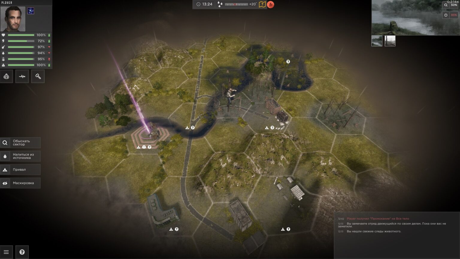Крайне интересный и, если не ошибаюсь, оригинальный микс из жанров выживания, пошаговой стратегии и визуального квеста с выбором вариантов. Очень красивый стиль с рисованными заставками, меню и другими картинками в окошках взаимодействия. Атмосферная музыка и закадровый голос в заставке. Игра для массового игрока не подойдет из-за высокой сложности и порога вхождения, но любители таких игр, как Zomboid, точно проведут там много времени. Визуально подводят только пошаговые бои, где видны все недостатки выбранной упрощенной графики.