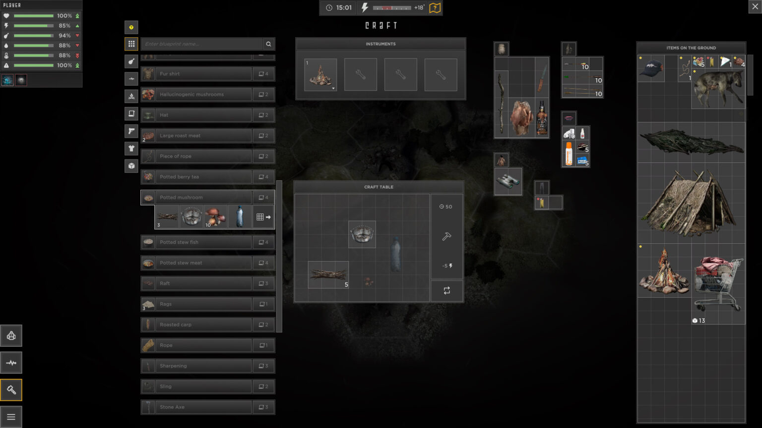 Собирательство - ищите съедобные растения и воду. Используйте специальные навыки, чтобы определить, что безопасно для еды.