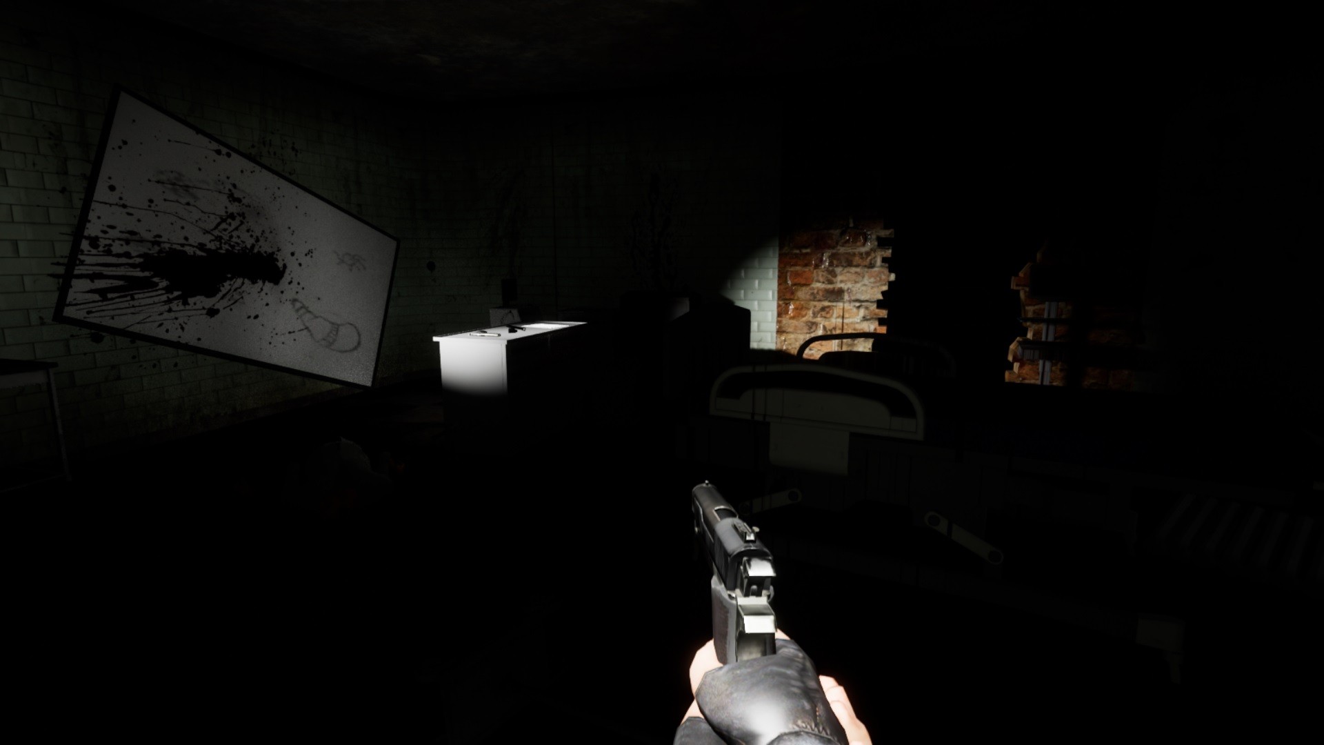 В игре полная темнота. Чтобы увидеть врага - придется стрелять в темноту. Выстрел освятит комнату и замедляет время, но лишь на мгновения, давая вам шанс прицелиться и добить угрозу. И помните, каждый выстрел должен быть иметь разумным. Ведь патронов мало, не все пациенты агрессивны, а шум может привлечь действительно опасных больных.