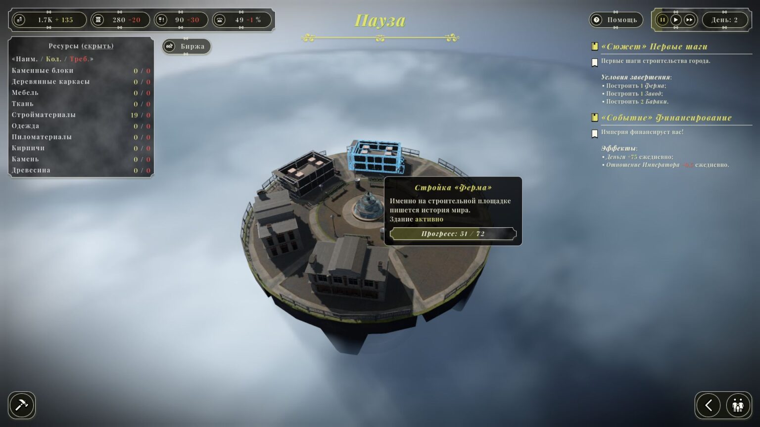 Впечатления скорее отрицательные. С одной стороны вроде бы и ничего игра. С другой — очень уж она комплексно слабая по ряду важных параметров. Очень просто выглядит в плане графики. Видов зданий, производственных цепочек, видов ресурсов явно мало относительно лучших образцов подобных игр. Развития технологий не обнаружил.