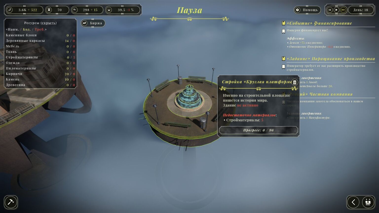 После ознакомления с альфа-версией до победного конца показалось, что разработчик грезит сделать математический градострой с упором на контроль ресурсов в постоянно меняющемся мире игры, где местный Император то налог на ваш чудо-город повесит, то соизволит давать деньги просто так. А потом начнётся война. По итогу ресурсы, которые производит город, подешевеют и вам придется работать в минус или переформатировать производство на другой ресурс.