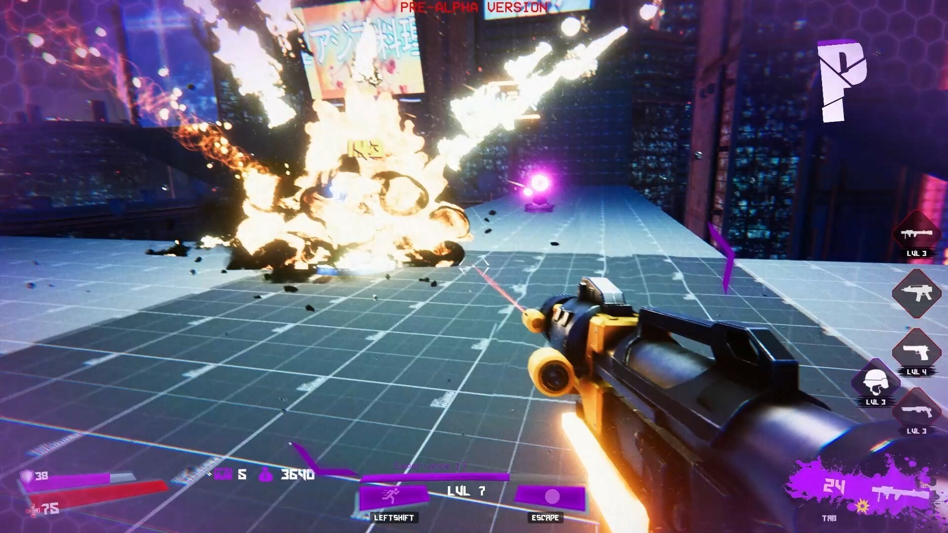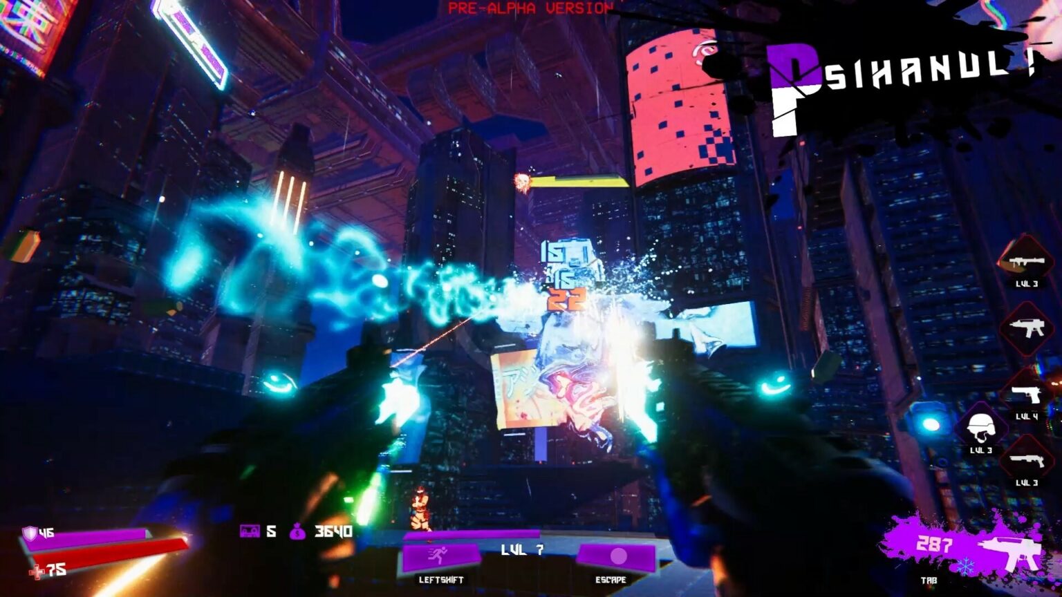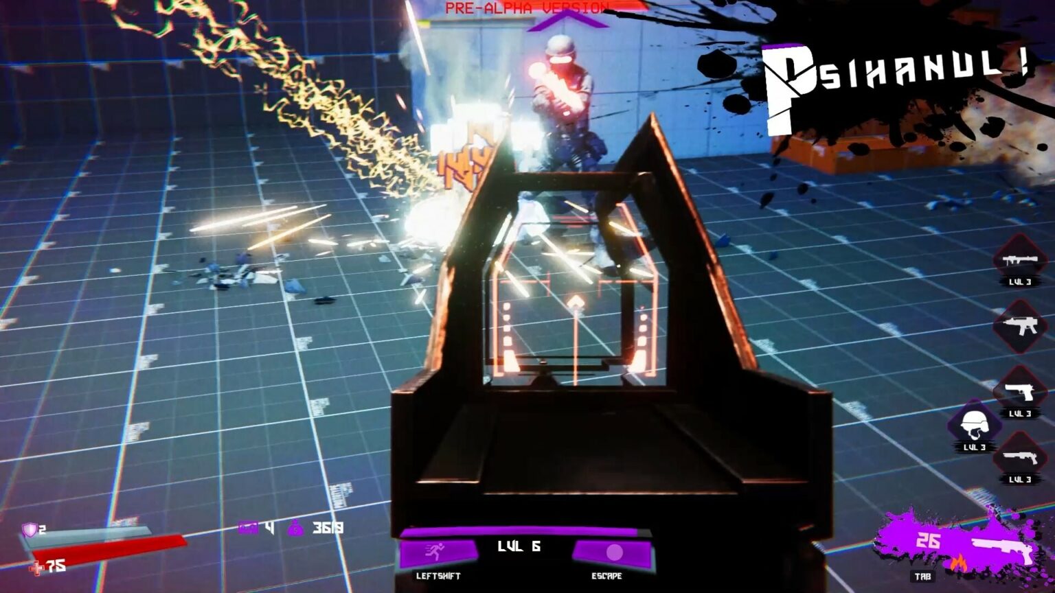 Минут через десять игры в настройках графики сняла все галочки. Ваш проект - это кошмар для эпилептика х) Ярко, сочно, все трясется, взрывается, вспышки ослепляют. С одной стороны картинка красочная, и вроде бы должна приносить наслаждение, но срабатывает эффект наоборот. Через 20 минут игры у меня очень утомились глаза, снизились концентрация и внимание. Эффекты действительно очень красивые! Но явно перебор, их слишком много. У вас и сами локации очень насыщены ярким неоновым светом, визуальная нагрузка на игрока идет колоссальная, от чего хочется “баланса” между спокойными элементами и яркими. Мобы сливаются с окружением. Вспомните те же референсы - Ultrakill и BPM bullets per minute, в них локации темные и даже невзрачные, без каких-либо акцентов, однотонные. Благодаря этому враги хорошо читаются, а глаз во время динамики не цепляется за лишние элементы, все внимание обращено только на врагов + устаешь не так быстро.