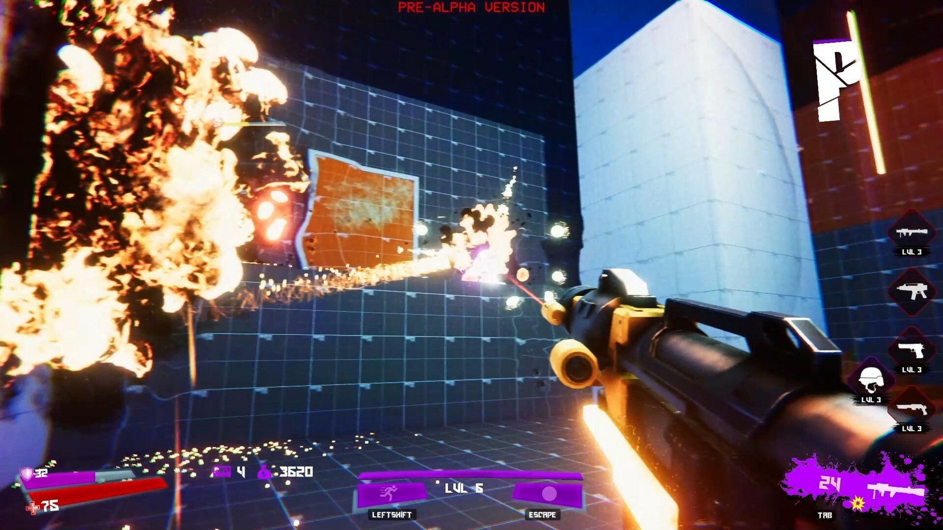 В игре сейчас особой динамики нет. Мне показался очень странным выбранный дизайн основного оружия. На мой взгляд - это палка в свои же колеса. В целом от игры ощущение, что она рассчитана на динамичное передвижение и постоянный экшен. Но проджектайлы (и безумная отдача, с которой мне было очень дискомфортно, но это сугубо индивидуально) в нынешнем их виде наоборот не дают тебе войти в этот поток и постоянно тормозят. Чтобы ими прицелиться и попасть, приходится останавливаться и просчитывать свои выстрелы. В итоге, механика передвижения и механика стрельбы работают вопреки друг другу, а не вместе :(