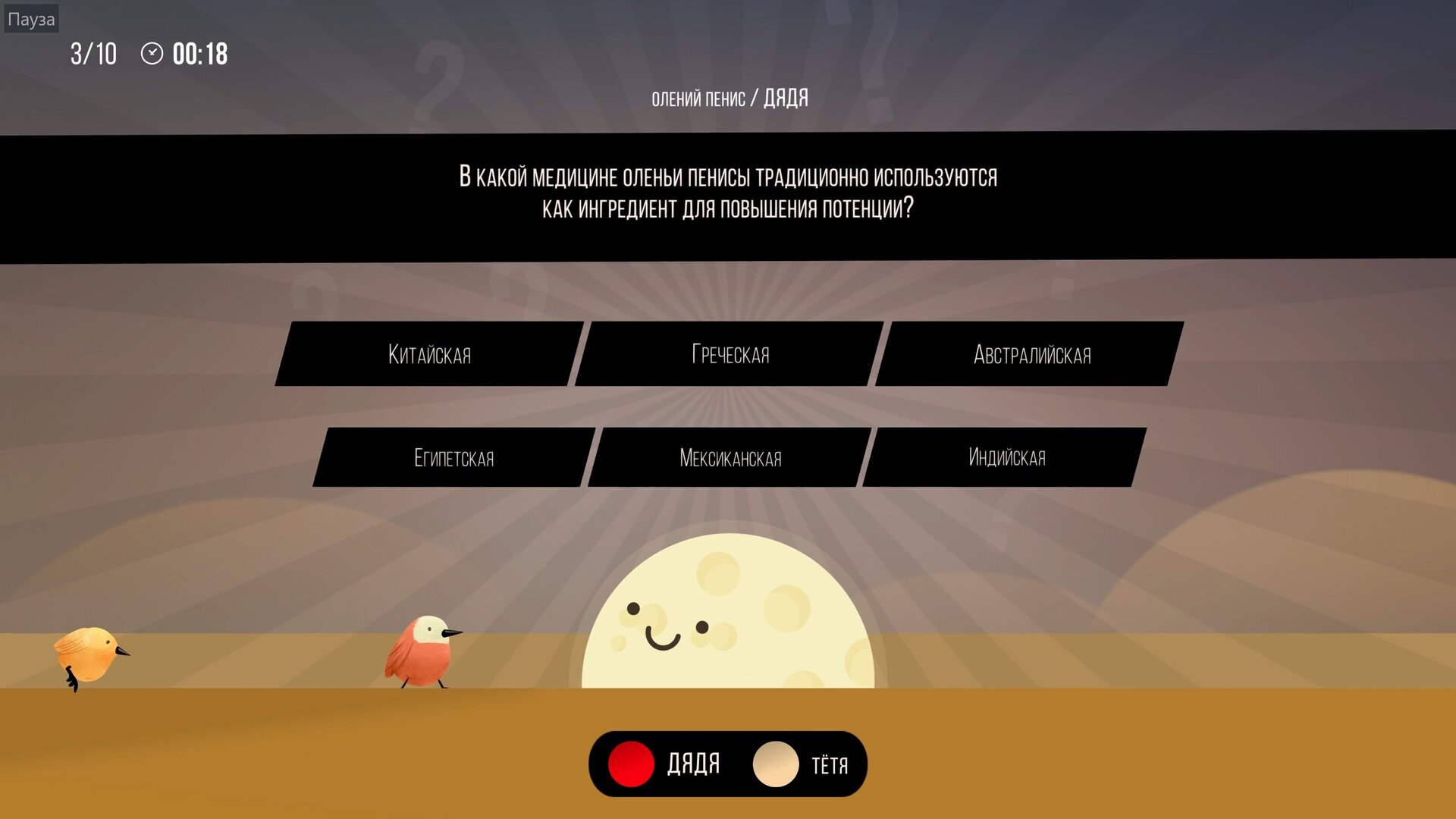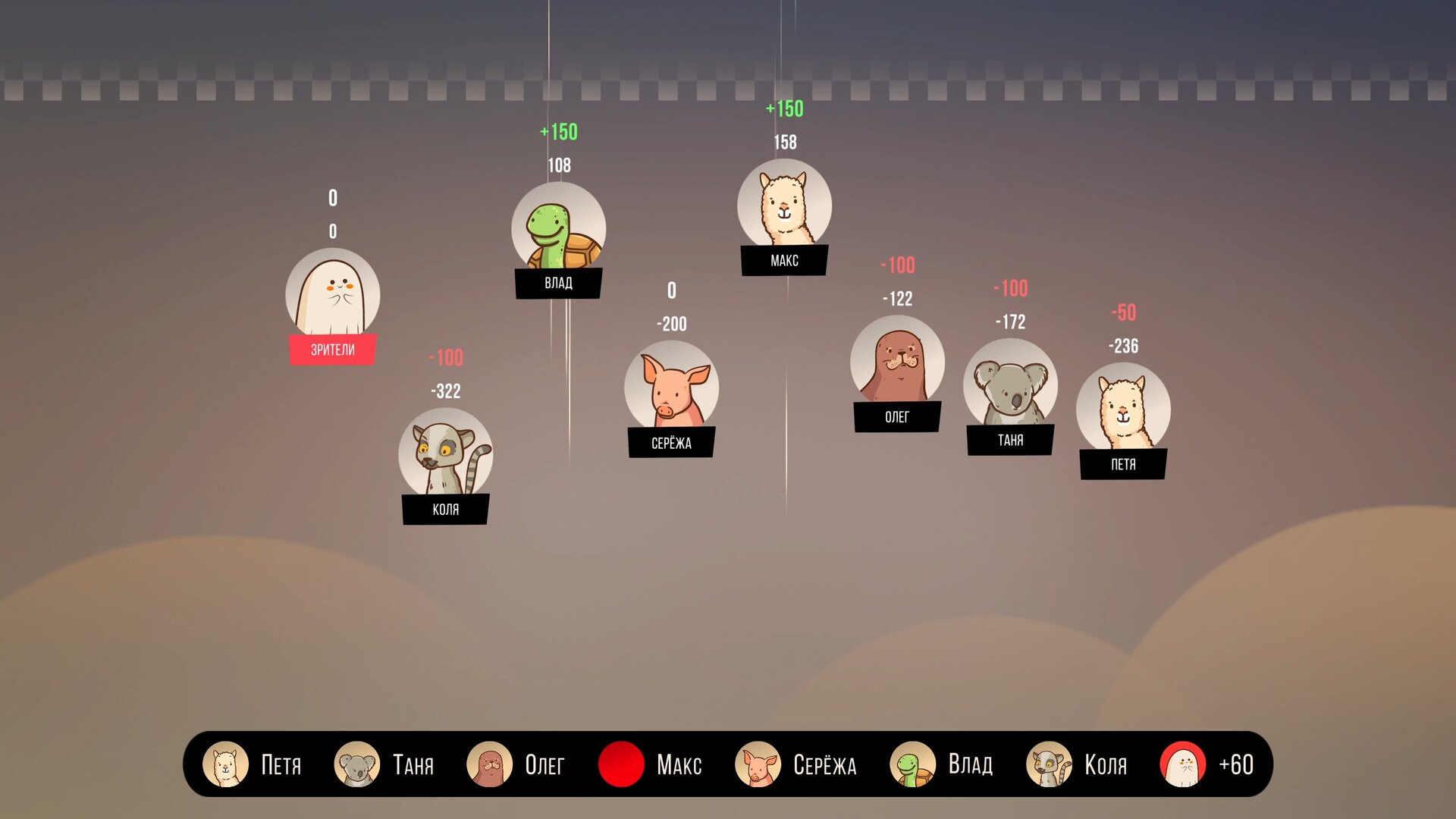 Квиз — интеллектуальная битва. Вопросы из базы, блеф-ответы для запутывания соперников. Можно создавать кастомные квизы или играть в уникальный AI-квиз с озвучкой вопросов и фактов.