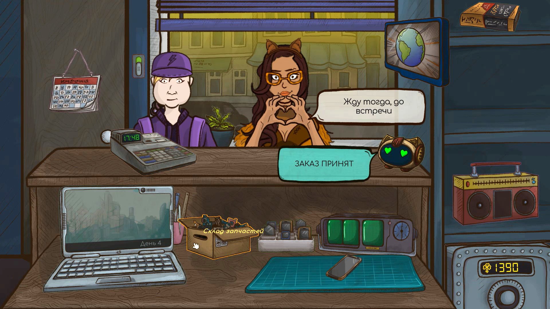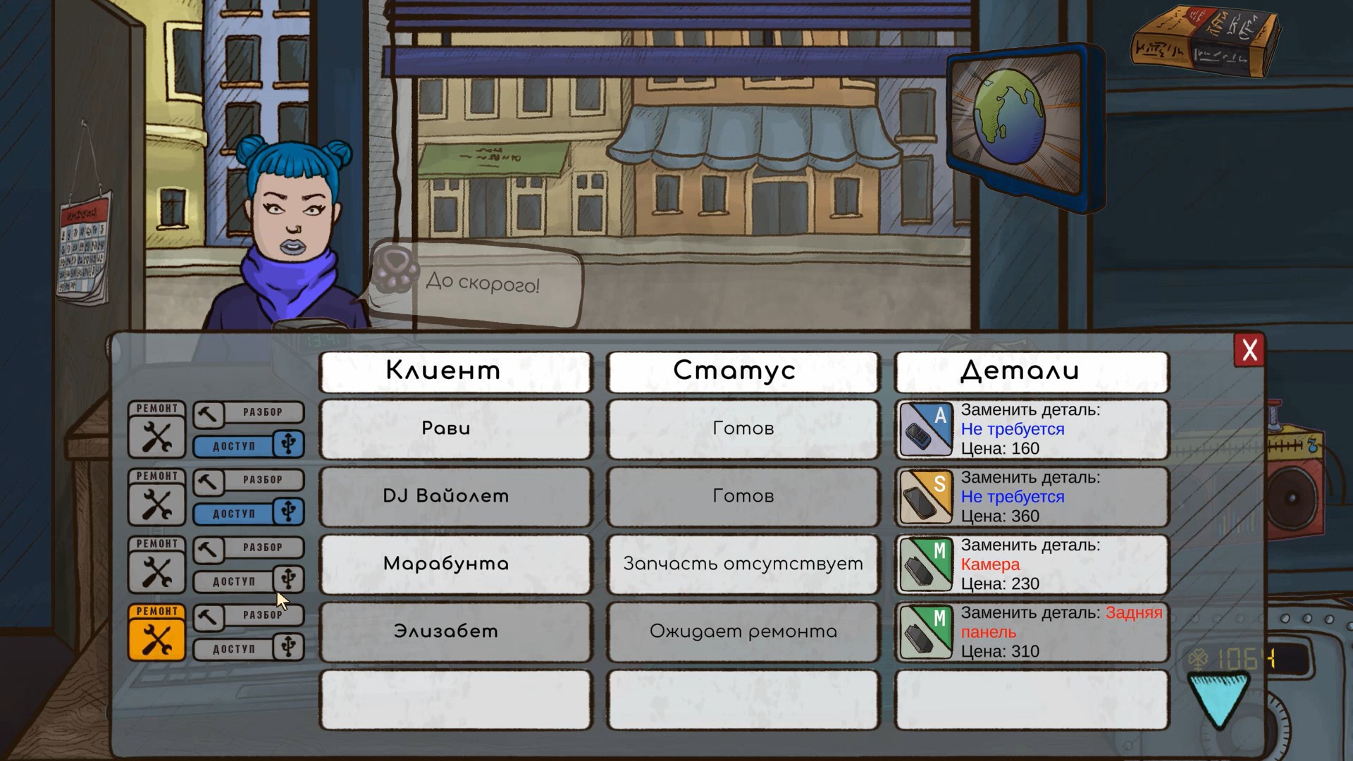 Впечатления от игры самые хорошие. Здесь много доброго юмора, мемов. Скучать не приходится. То заказываем запчасти, то пытаемся в уме по-быстрому вычислить цену и срок проведения работ, то копаемся в данных телефонов для разных побочных квестов. Очень понравился проработанный экономический баланс, если более-менее правильно назначать цену и время выполнения работ, то, скорее всего, денежки на счету будут стабильно прибавляться.