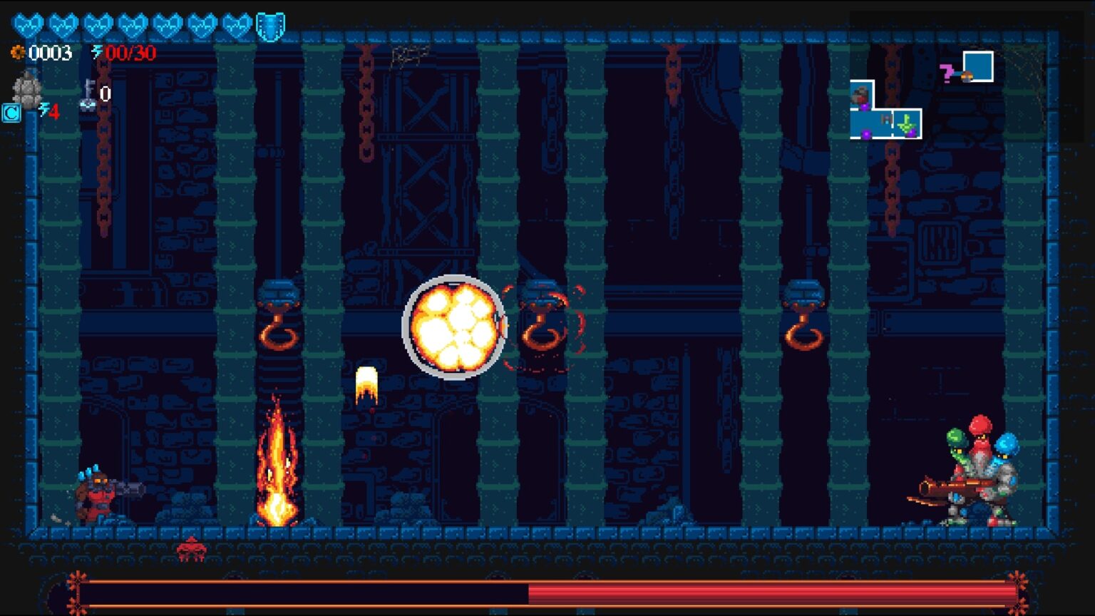 Выглядит как отличный экшен-платформер с элементами метроидвании. Боссы, сюжет, прокачка... фанатам жанра - взять игру на заметку. Сделано с душой и со знанием дела. Еще один маленький совет разработчикам. Понятное дело, что герой со временем будет быстрее, сильнее, круче. Но в начале, когда персонаж специально слишком медленный и слабый (стреляет недалеко, прыгает не высоко, двигается долго...), сделайте вводный обучающий уровень в виде сражения с сильным врагом, показав игроку "всю возможную мощь персонажа".