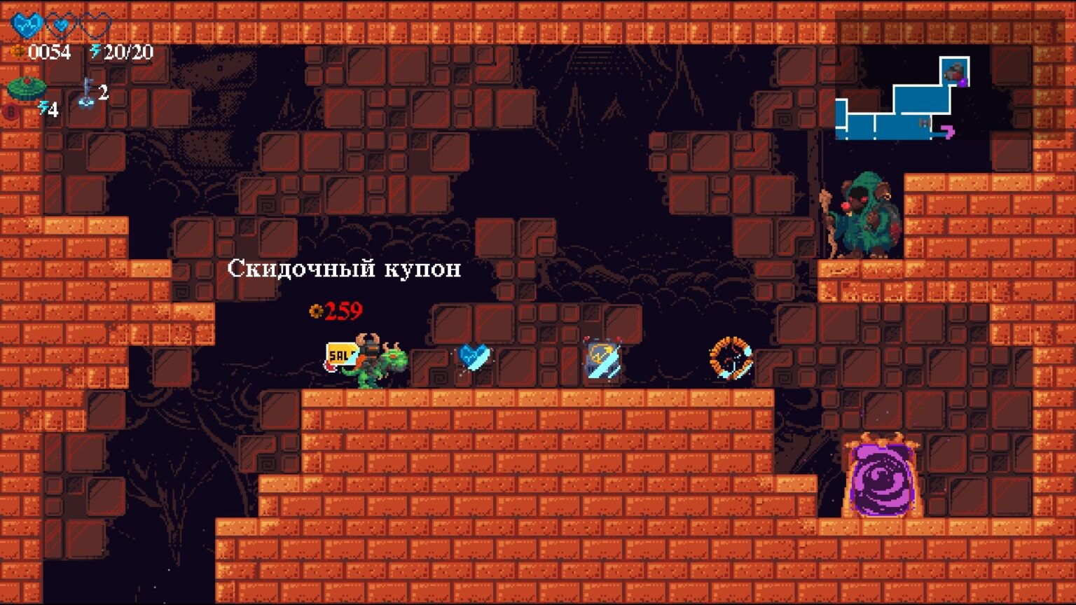 Что не понравилось на данном этапе: раскладка управления по умолчанию (но это поправимо, если можно забиндить собственные кнопки). Также хотелось бы, чтобы и после обучения напоминалки "какая кнопка и что делает были". Например A - действие. Если зайти в игру через большой промежуток - можно забыть). Сами иконки на мини-карте показались излишне образными. Если есть возможность сделать их чуть поточнее - я бы сделал, хотя со временем привыкаешь и к нынешним. Первый "трёхглавый босс" показался сложным, с учётом, что после смерти приходится снова к нему идти через весь уровень. Может быть подумать над вторым шансом или поубавить его сложность - вкачать перса, как бы ты не пылесосил карту, у меня не вышло (некоторые бонусы падали на колья, или улетали в другие части уровней) :) С другой стороны - это ещё и рогалик, который даёт определённый челлендж, как в старые добрые. Но я прихожу к мысли, что над экспонентой сложности я бы ещё подумал. Либо я так позабыл жанр и не справился :)) Во второй, третий раз идти до босса ощущалось немножко рутинным.