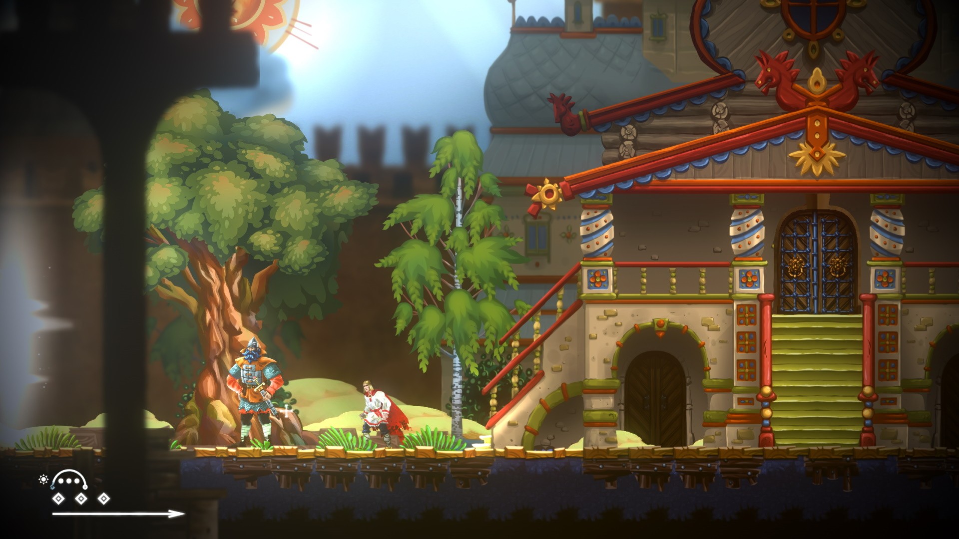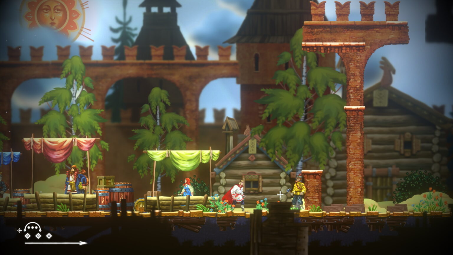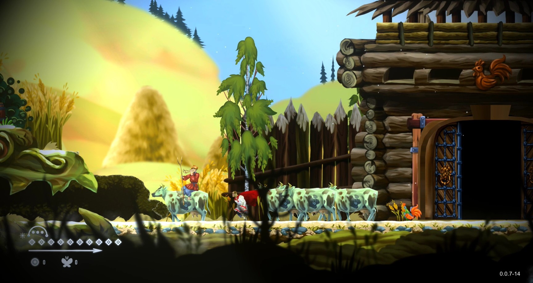 Особенно радует, ранее упомянутый, фольклорный элемент. Он узнаваем, забавен, а музыка поддерживает колорит и атмосферу. Пожалуй играя в это я смогу точно сказать что это скорее платформер близок по духу мультфильмам о богатырях от Мельницы, нежели к мрачному славянскому фентези. Здесь нет ничего мрачного и это достаточно хорошо. Не могу сказать за геймплей и насколько он будет в итоге увлекателен, но есть определённое разнообразие механик, что разбавит пресность базовых элементов платформера.