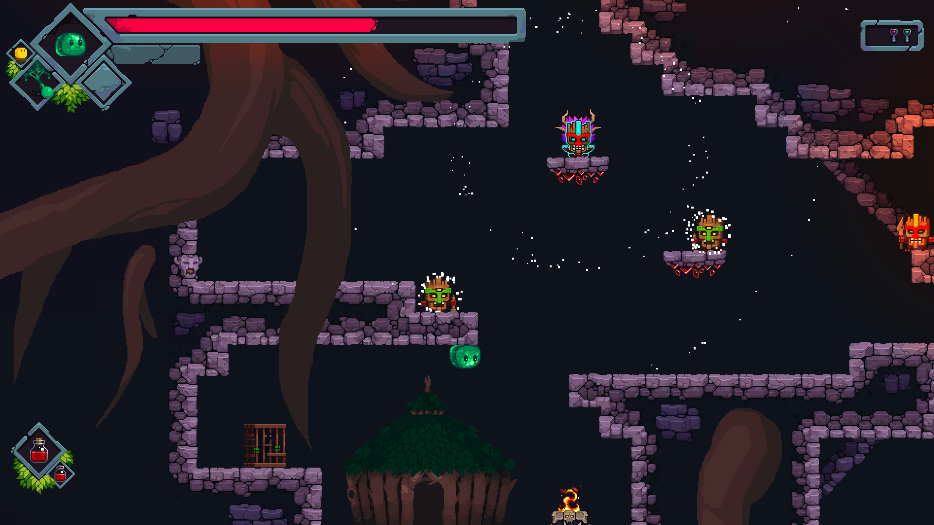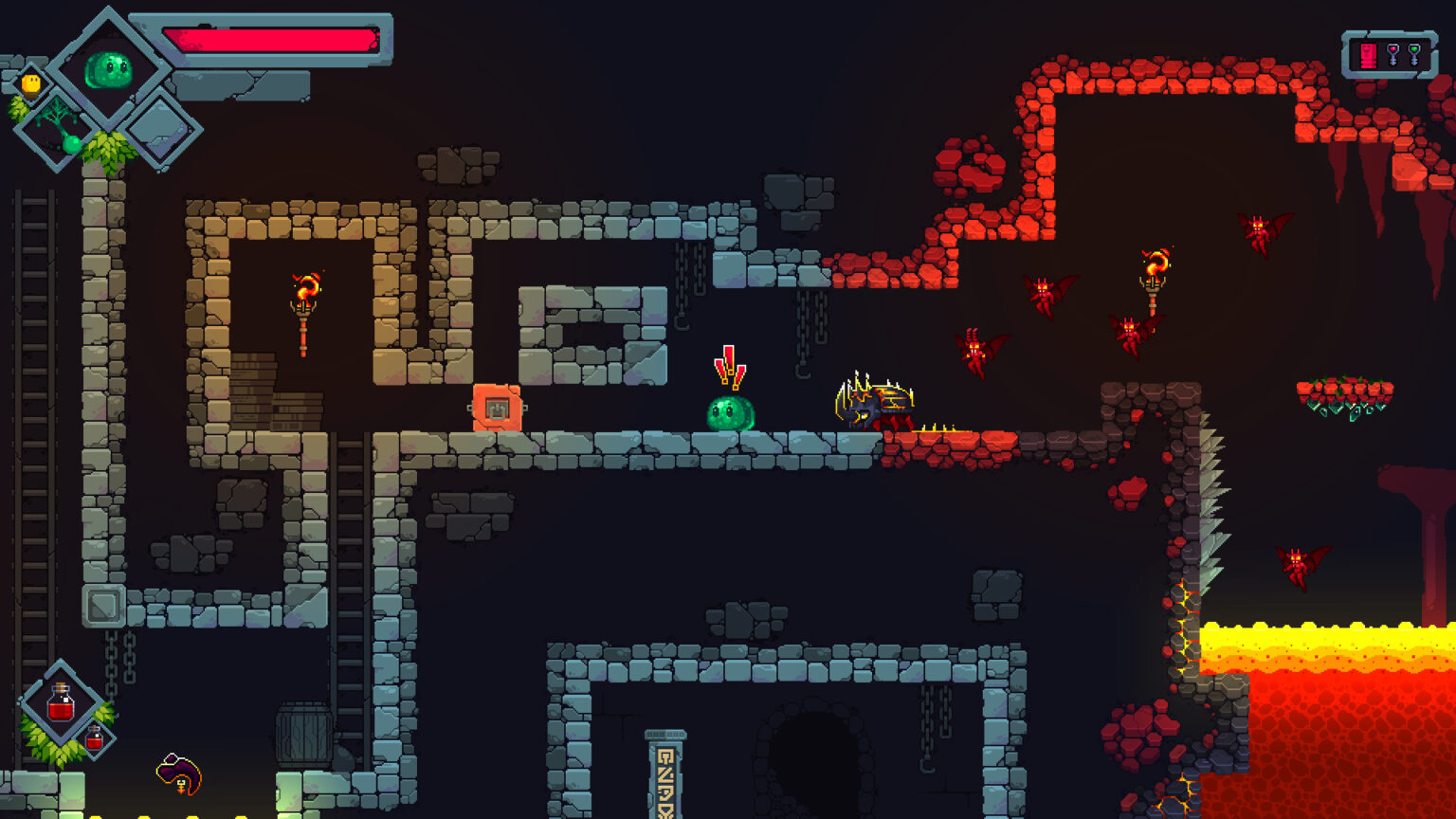 Способности почти всех слаймов мне стали понятны интуитивно, но хотелось бы увидеть обучение. Возможно, было бы лучше сделать их получение немного более растянуто, чтобы игроку сразу пришлось использовать приобретенные способности, учась постепенно.