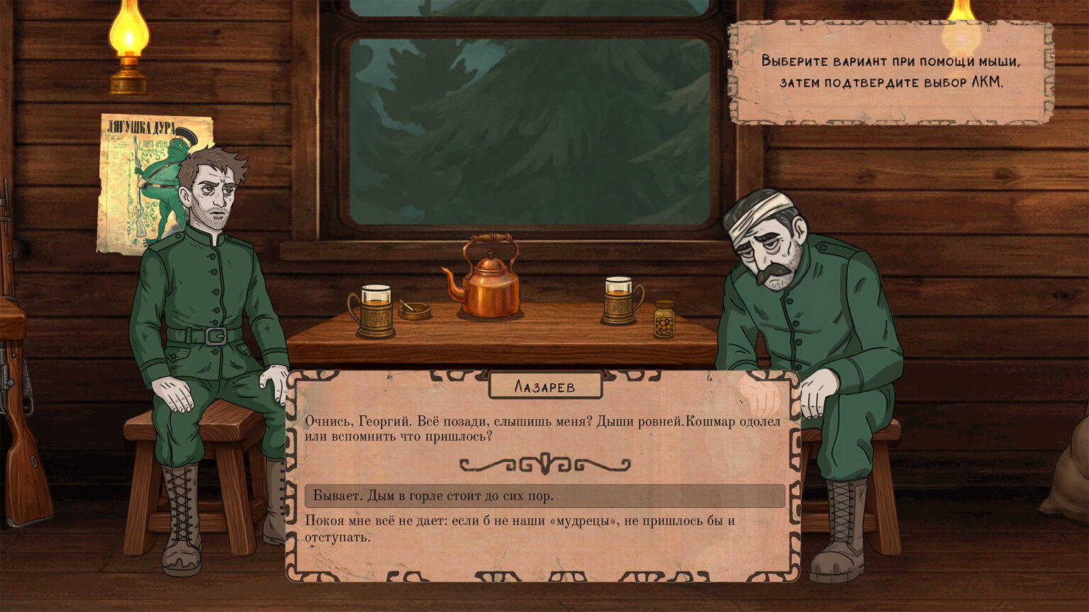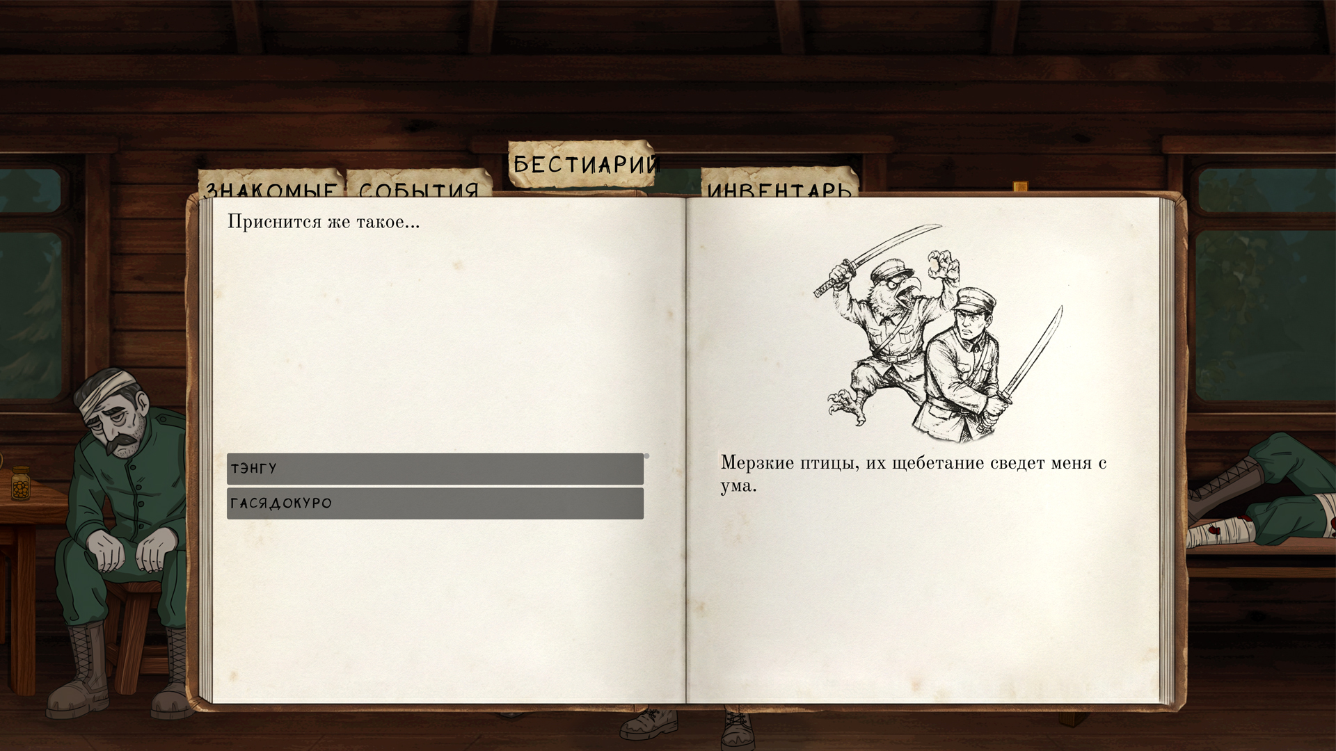 Ночью же он проваливается в ужасный сон — искажённое поле боя, где внутренние страхи героя обретают форму существ из японской и славянской мифологии.