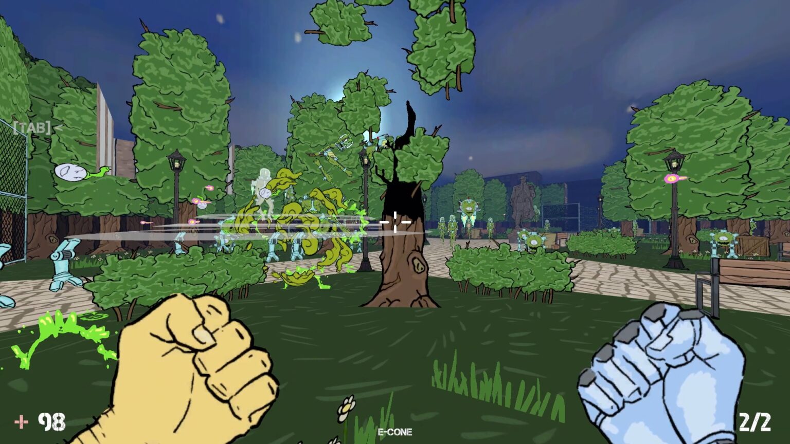 8. В других главах враги другого цвета. Деревья можно выкосить - останется меньше зелени. Сдается мне, демо не было пройдено, и битва с боссом в парке не пережита.