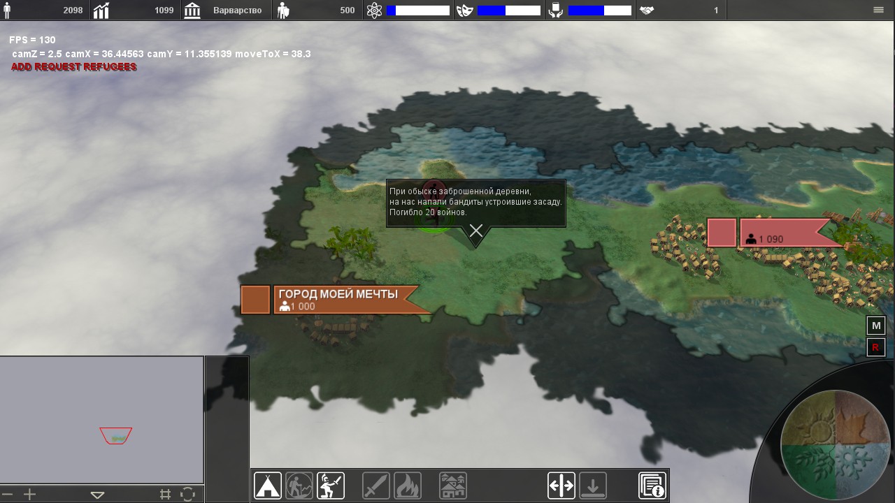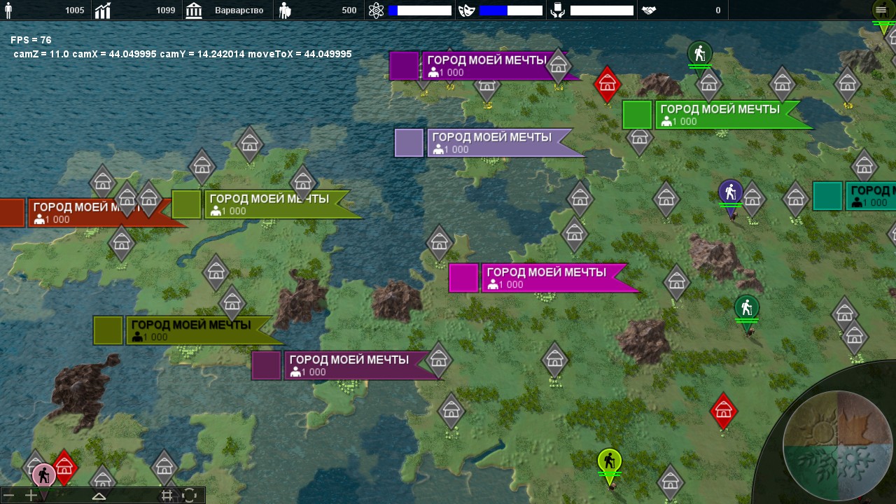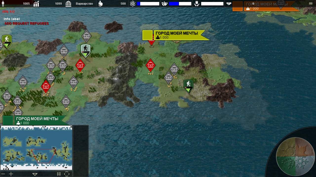 3. Разделение страны на регионы, управление регионом, а не городом (поселением). В регион может входить разное количество поселений. На первом этапе игрок управляет городами.
