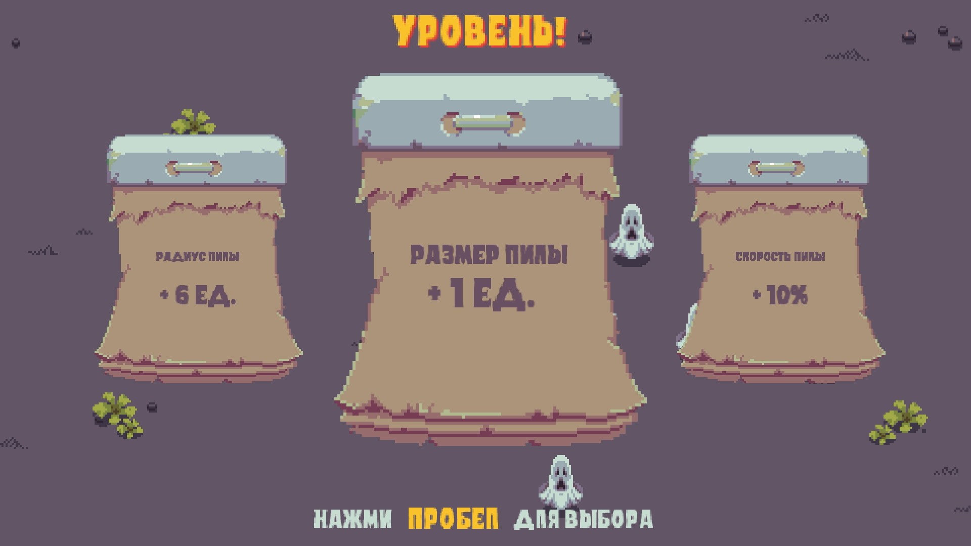 Но! Из-за того, что все враги в основе своей действуют одинаково (некоторые двигаются по разному, но так или иначе просто преследуют героя), всё действо сводится к беготне по кругу на небольшой карте. Да и оружие сейчас одно - пила. Можно увеличивать её скорость, размер, но принцип работы один - крутится и режет врагов. Так что развлечения на данный момент даже меньше, чем в змейке. В змейке элементы появляются в разных местах карты и ты должен добраться до них, не попав на самого себя. А тут думать не приходится от слова совсем, достаточно понять принцип. Так что уже после второго забега отпадает желание продолжать. Нет цели, нет челенджа, нет разнообразия.
