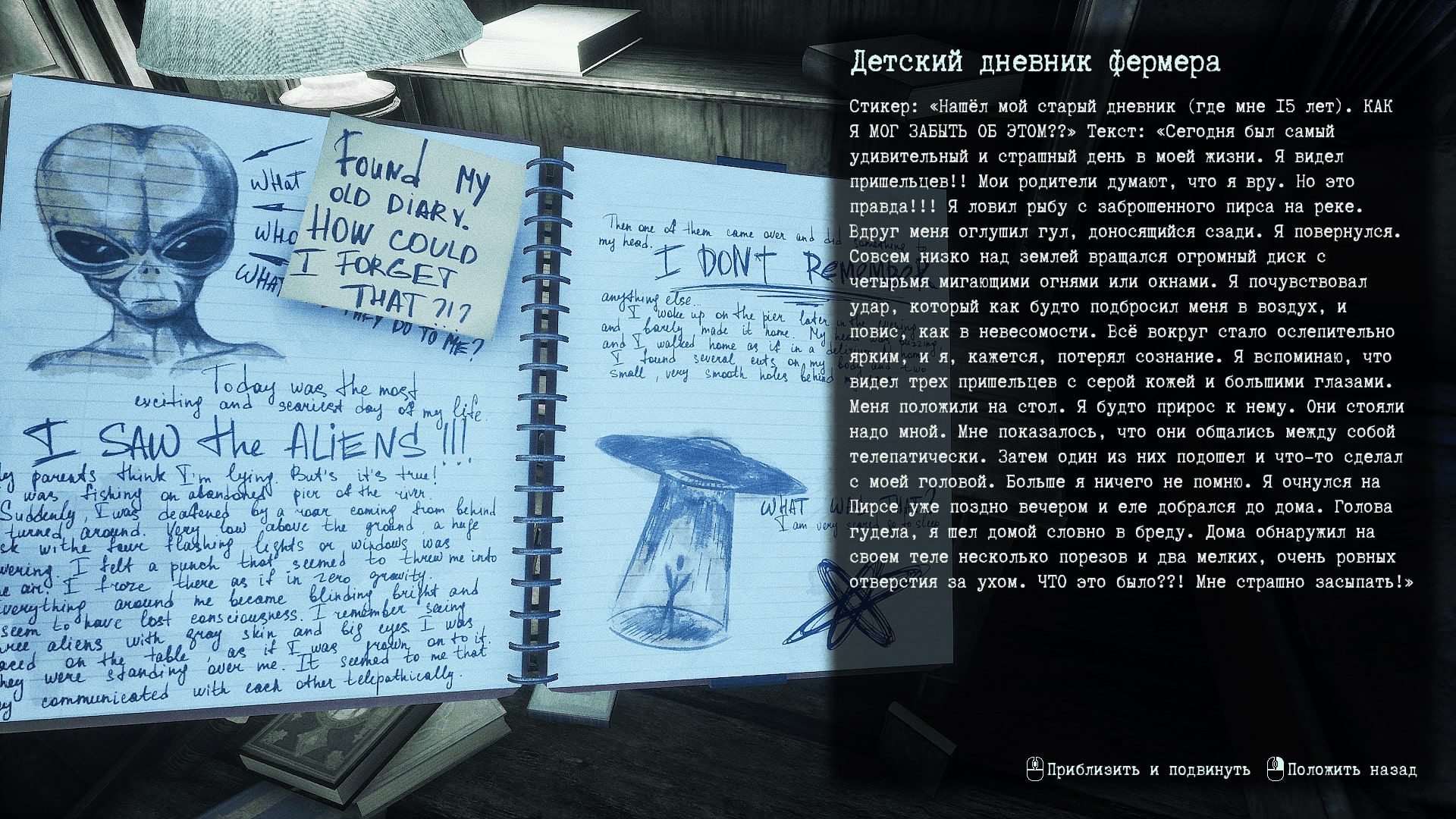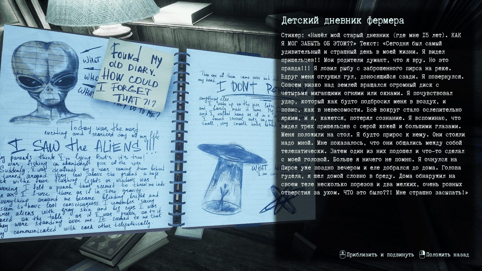 По игровому процессу здесь всё довольно стандартно для хоррора и симулятора ходьбы. Исследуем окружение от первого лица в поисках предметов для взаимодействия, читаем записки, светим фонариком и продвигаемся дальше по сюжету. Сборка работала стабильно, явных проблем я не обнаружил. Здесь приятный визуальный стиль, грамотно наполненное окружение и неплохая работа со звуком. Звуки скримеров аутентичные для UFO-тематики. Сами «зеленые человечки» в целом тоже жуткие. Антураж и стилистика старых фильмов про инопланетян выдержаны умело, а демка ощущалась цельной с точки зрения заданного сеттинга. Лично мне показалось маловато внимания к деталям. В прологе персонаж по профессии военный, а устает от бега так быстро, будто у него вес под 200 и явные проблемы с физической подготовкой. Просто невидимые коллизии тоже не самое лучшее решение. Ног и даже рук у персонажа не видно ни в одном моменте, что тоже так себе погружает. Со стороны игрового процесса здесь ничего нового или необычного для жанра, но разработчики и заявили, что это классический хоррор. По демке и прологу судить о финальной версии игры сложно, но картина в целом вырисовывается скорее положительная. Успехов в разработке!