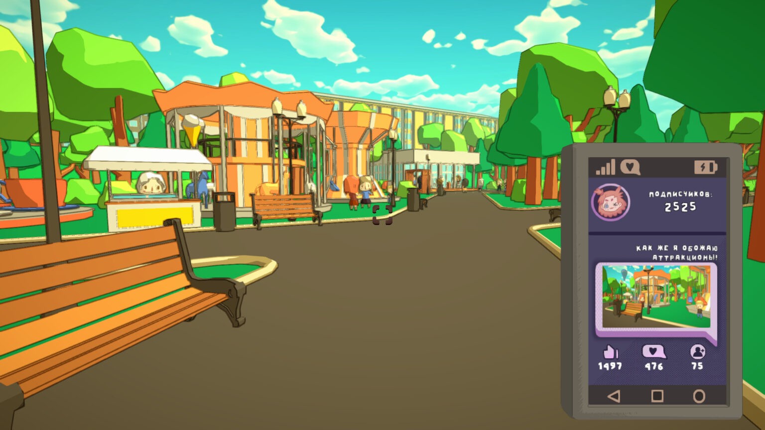 Не знаю для кого игра. Взрослому скучно, да и зачем это ? Для ребёнка сложно в плане понимания, походить посмотреть достопримечательности ? Ну такое себе. Описывать особо нечего, ходим фотографируем, делаем не понятные квесты, собираем подписчиков, фонтан сразу привлёк 50 подписоты, спасибо ему.