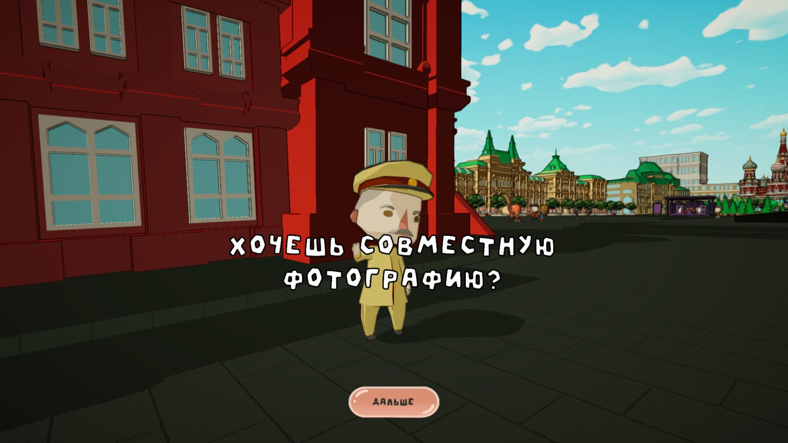 Графика в целом приятная. Хотелось бы, чтобы непросто ходить фотографировать по списку, а ещё и давалось информация по объектам в образовательных целях. Можно реализовать в виде экскурсоводов, заодно были бы подсказками, так как дети вред ли знают как выглядят данные достопримечательности, да и не каждый взрослый тоже. Идея с мини играми вносит разнообразие в игровой процесс, но есть замечания по ним, например, а ребёнок точно может знать фамилию Сталина? На барабанах по идею должна получается музыкальная композиция, а на деле просто битью, ни чем не отличимое от не попадания в ритм. Звуковое сопровождение вообще слабое место в игре, унылая мелодия и звуки просто взятые и библиотеки. Левел-дизайн в целом неплох, но невидимые стены желательно чем-то огородить - толпой, палатками, ограждениями. Есть проблема застревания в лестницах, не ещё один недостаток, когда достаёшь телефон, желательно чтобы камера фиксировала, а стрелка оказывала только в радиусе телефона. Идея хорошая, особенно если сделать акцент на образовательную часть, но нужно серьезно дорабатывать.