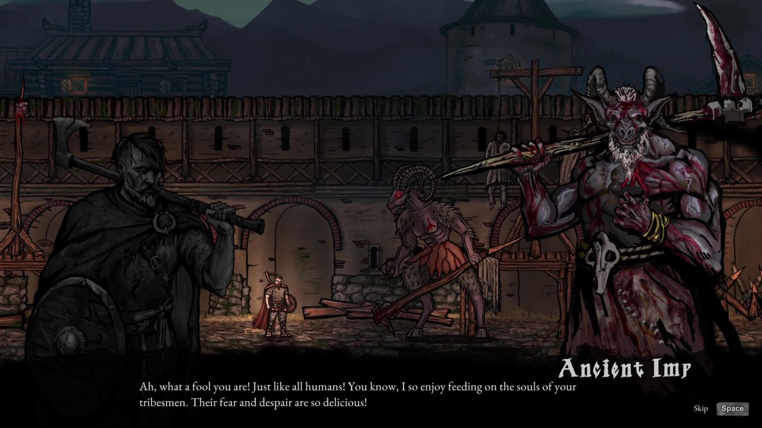 На данном этапе мне не зашла. Но ! Игра выглядит красиво, сеттинг приятный, персонажи интересные, сам мир выглядит прям мрачно, музыка отлично подходит для прохождения игры. Сейчас есть множество недоработок, понятно, что они будут доделываться и полироваться, но вот что я увидел для себя. Очень топорно выглядит сам бой, он не живой прям, анимации огня если выглядят плавно, а вот плащ нет, поэтому в глаза прям сильно бросается и случается диссонанс. При употреблении зелья странная сильно анимация, управление, играл на клава+мышь, частно не срабатывает пробел при прыжке, и после появления у камня, чтобы пойти влево или вправа, сначала нужно протыкать пробел и управление оживает. Бой с чертом отдельная не приятная вещь, хит боксы сейчас у него кривые, ты вроде как прокатываешься и уже у него за спиной, а он попадает все равно. Так же иногда он смотрит в одну сторону, а бьёт в другую,ну ине большие не состыковки, к примеру кузнец стоит работает, а у него по деревне толпой ходят зомби и заблёвывают всё вокруг, ну это как то не очень для меня понятно. Боевая система сейчас также скучная, прокат удар, прокат удар, и был момент, при битве с медведем, чем больше тыкал кнопку мыши, тем быстрее начинал бить персонаж, не знаю, баг или фича, н о вот такой момент был. Да я понимаю, что рано и ещё многое делать, но пока что выглядит как один из многих подобных 2д соулсов, сейчас сильно вытягивает игру атмосфера, сил и терпения в дальнейшей разработке, надеюсь увидим годный проект.