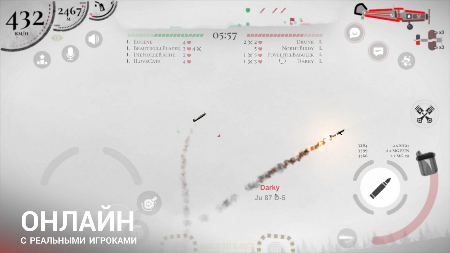 Сражайтесь с игроками со всего мира в напряженных боях 1 на 1, 2 на 2 и 5 на 5, или проверьте свои навыки в пяти уникальных игровых режимах, таких как «Линия фронта» и «Превосходство в воздухе», каждый из которых представляет собой новый вызов. Реалистичная (да-да, очень реалистичная) физика, продуманное управление и живые исторические самолеты сделают каждую победу заслуженной.