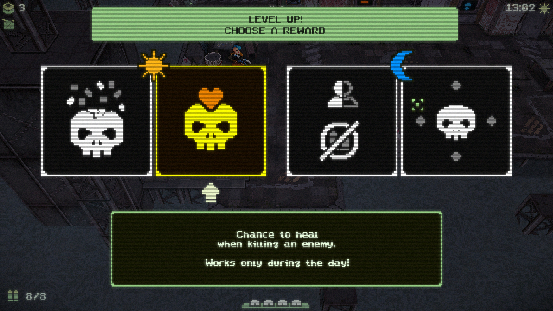 Одни перки работают только днём, другие исключительно ночью. Планируй развитие персонажа с учётом времени, которое неумолимо движется вперёд.